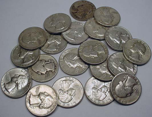 LOT OF 20 90% SILVER WASHINGTON QUARTERS - 1964 OR EARLIER - UNSEARCHED!!