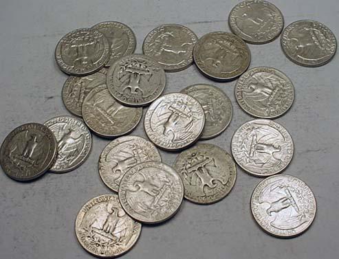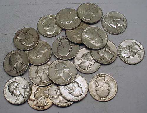 LOT OF 20 90% SILVER WASHINGTON QUARTERS - 1964 OR EARLIER - UNSEARCHED!!