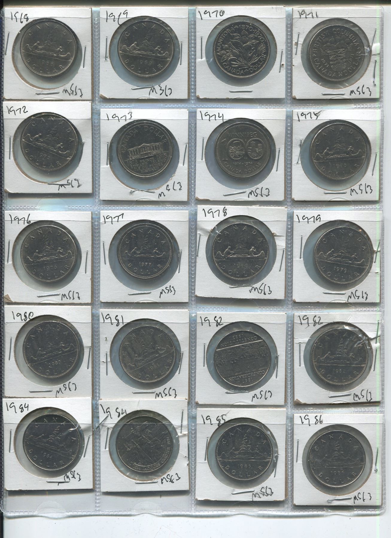 LOT OF 20 CANADA DOLLARS - ASSORTED YEARS 1968-1986