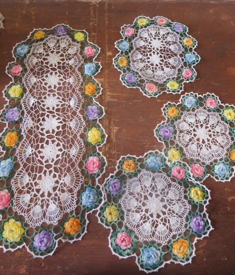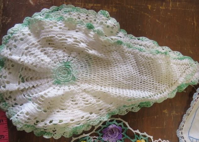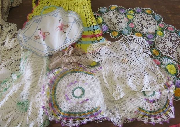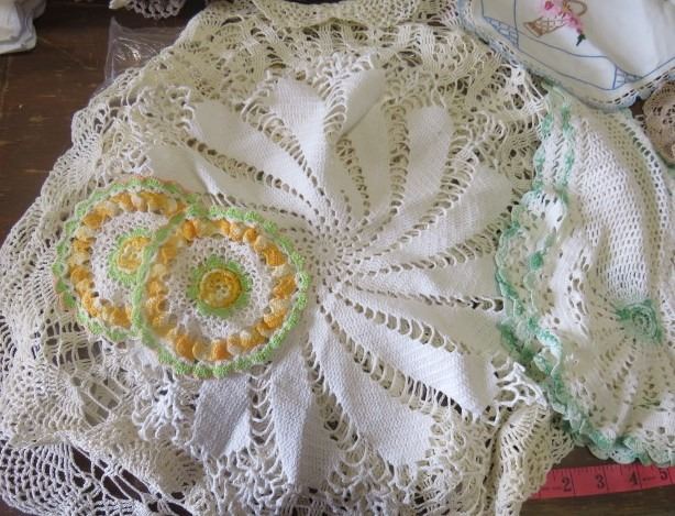 LOT OF 20+ DOILIES AND CHILD'S CROCHET APRON