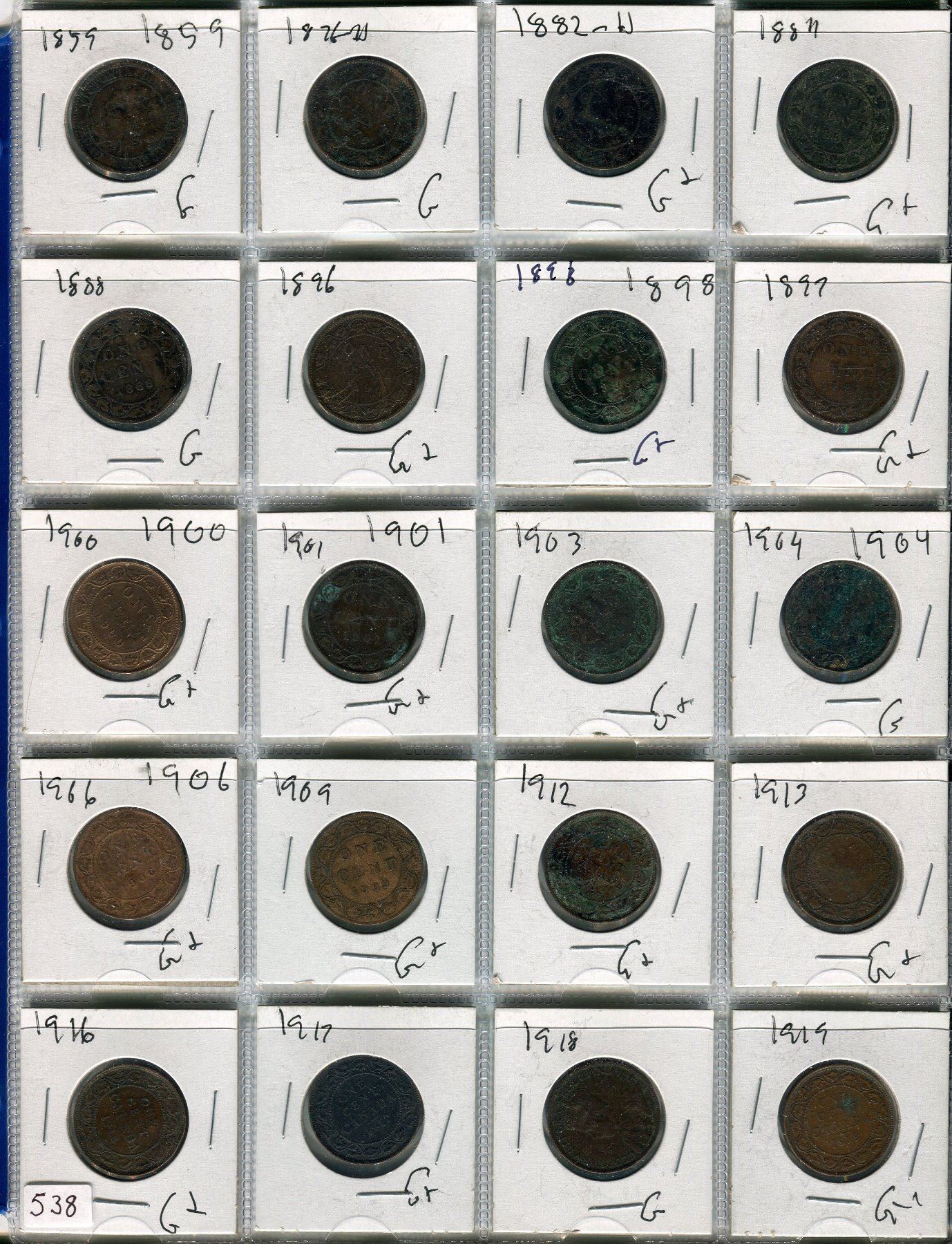 LOT OF 20 LARGE ONE CENT COINS (VARIOUS DATES) *1859-1919* (CANADA)