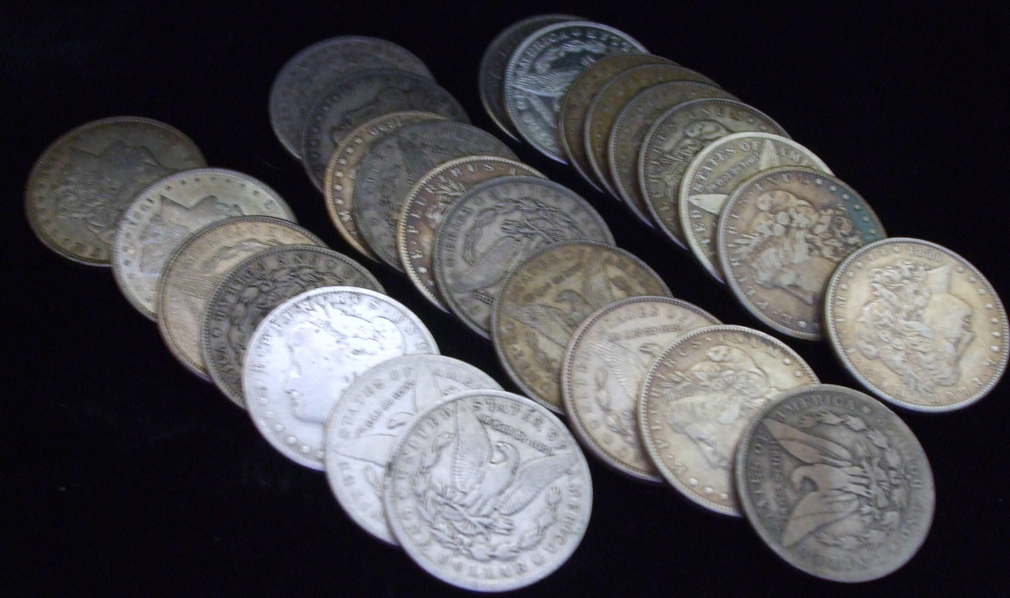 LOT OF 20 MORGAN SILVER DOLLARS 1878-1921 g-au grades