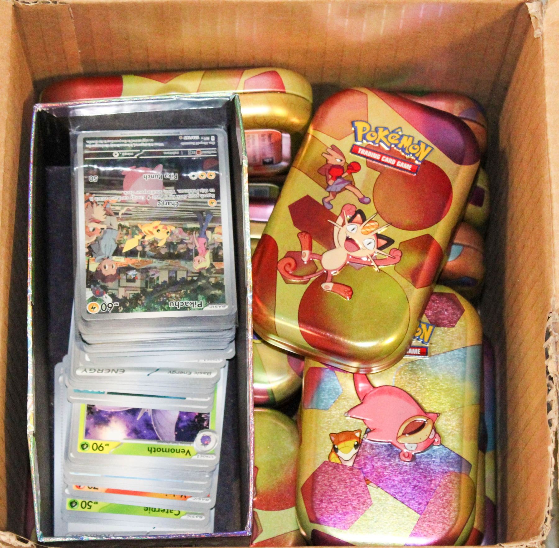 LOT OF 20 OPEN TINS OF POKEMON CARDS