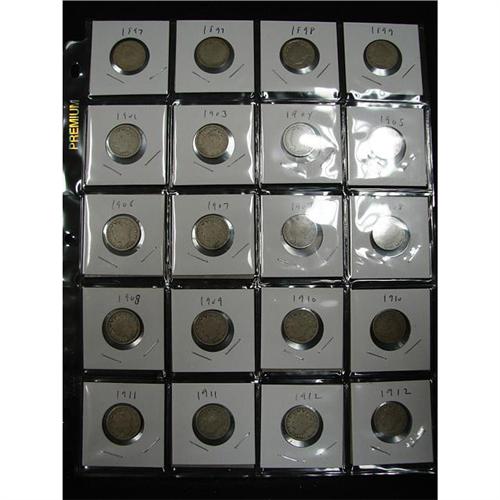 LOT OF 20 U.S. LIBERTY NICKELS. Consists of (2) 1897, 1898, 1899, 1901, 1903, 1904, 1905, 1906, (2) 1907, (2) 1908, 1909, (2) 1910, (2) 1911, & (2) 1912.