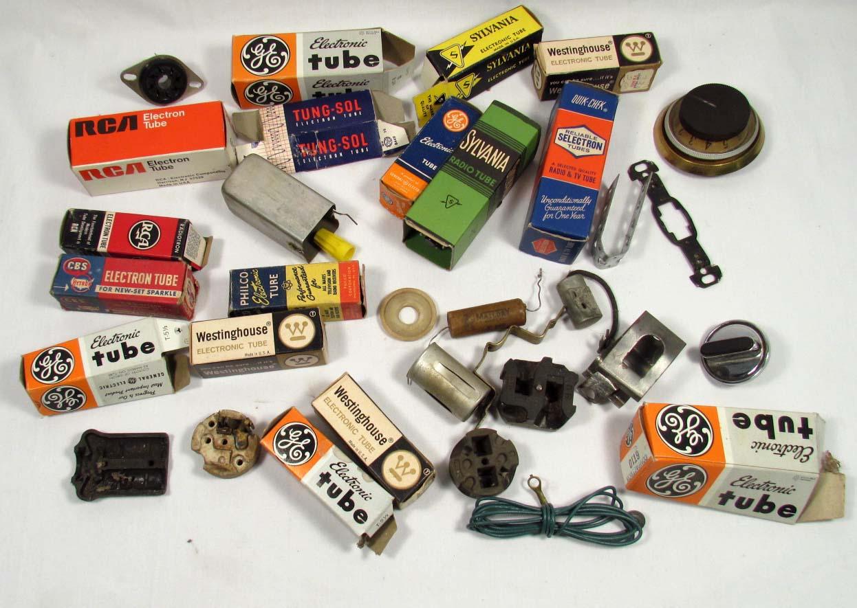 LOT OF 20 VINTAGE RADIO OR TELEVISION TUBES, PARTS, ETC... - Many in Orig. Boxes