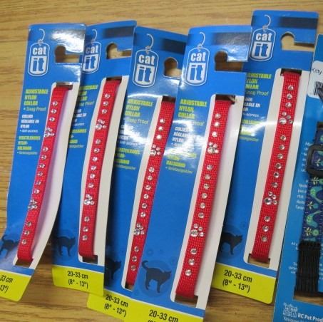 LOT OF 21 CAT ITEMS ( 4 X LARGE HARNESS AND LEASH SETS) *5 X RED COLLAR EXPAND 8" TO 13"* (7 X PRINTED COLLARS ONE SIZE FITS ALL) *NOS*
