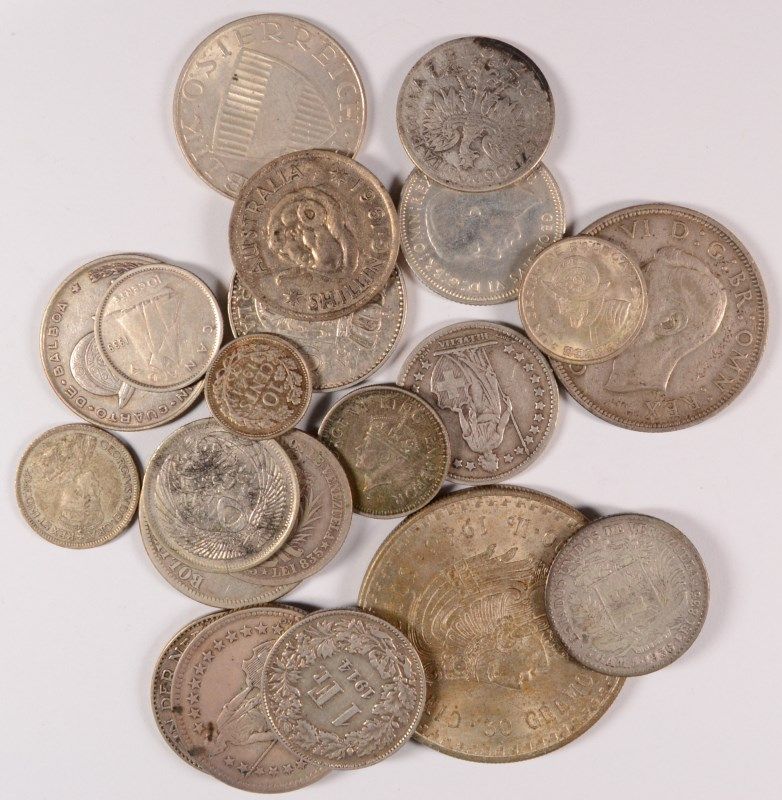 LOT OF ( 21 ) SILVER FOREIGN COINS, SOME OLDER DATES AND LARGER COINS!