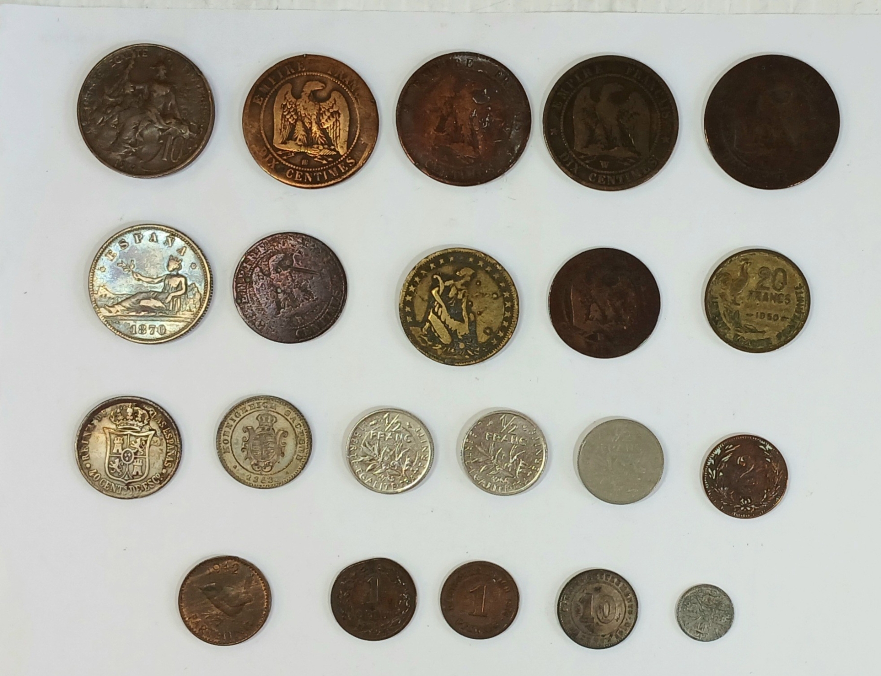 LOT OF 21 - WORLD COINS - INCL GERMANY, SPAIN, BRAZIL, NETHERLANDS, UK, ETC