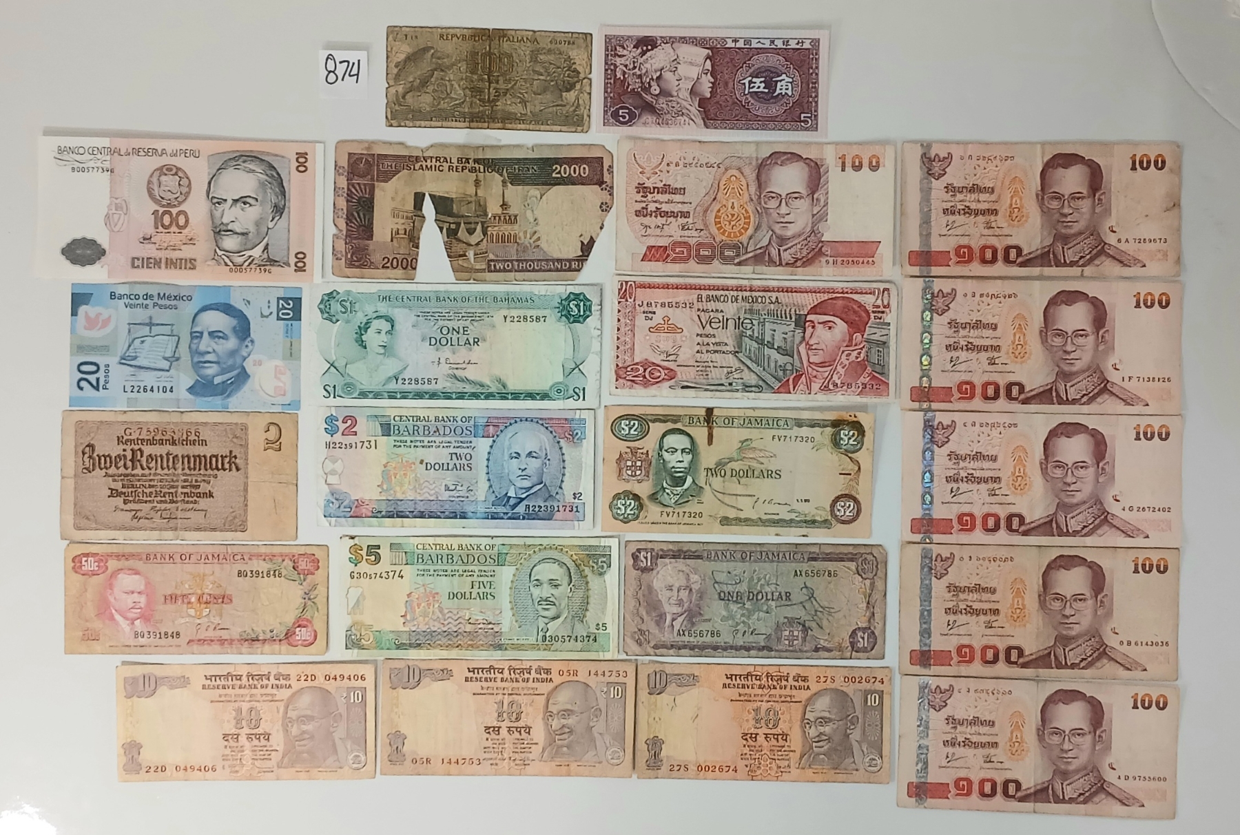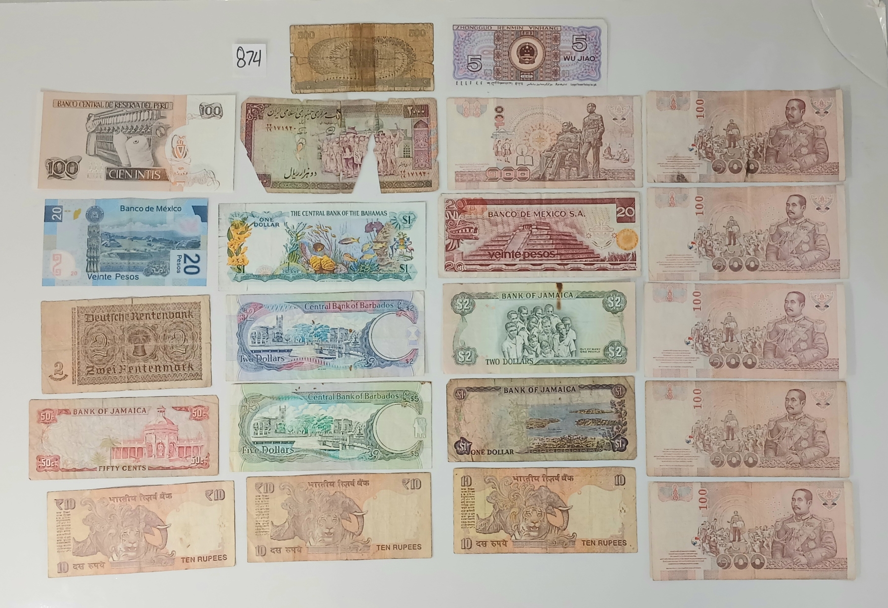 LOT OF 22 - WORLD BANKNOTES - MEXICO, JAMAICA, BAHAMAS, IRAN, REPUBLIC OF ITALY, ETC