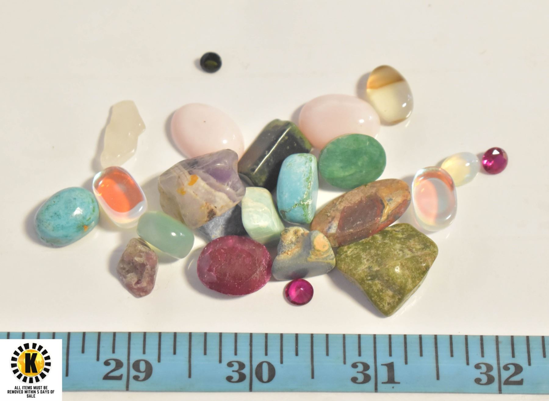 INCLUDES 9.5 CT EMERALD, 2 MATCHED OVAL PINK OPALS 20.5 CTS, AND MORE. JEWELLERY