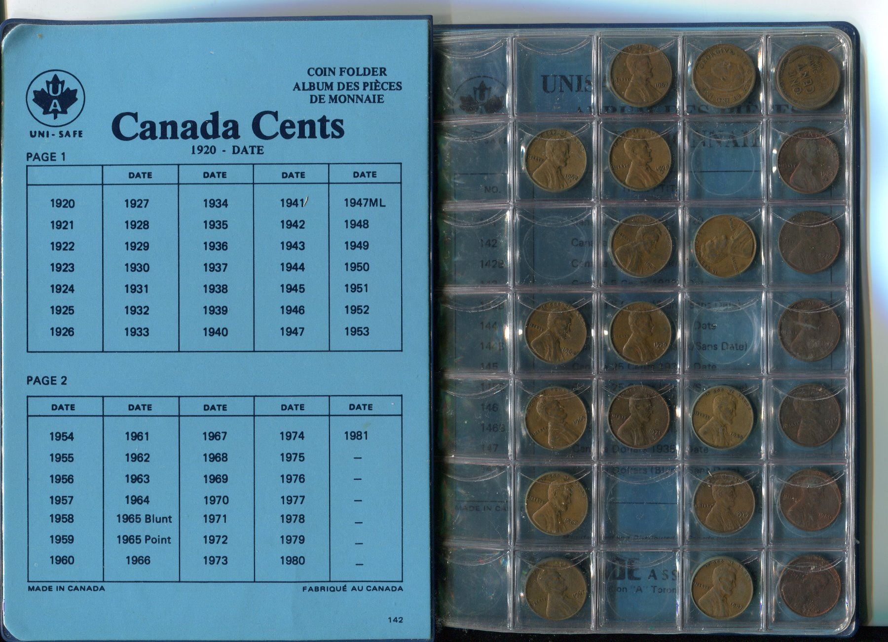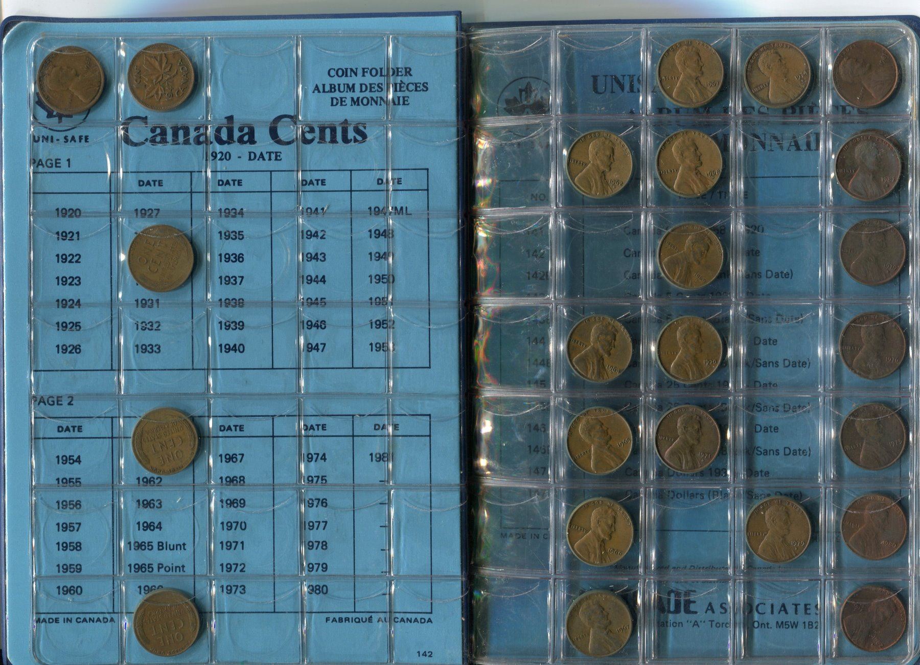 LOT OF 25 ASSORTED 1 CENT COINS ( USA) *NOTE: IN CANADIAN COIN HOLDER BUT THEY ARE AMERICAN*