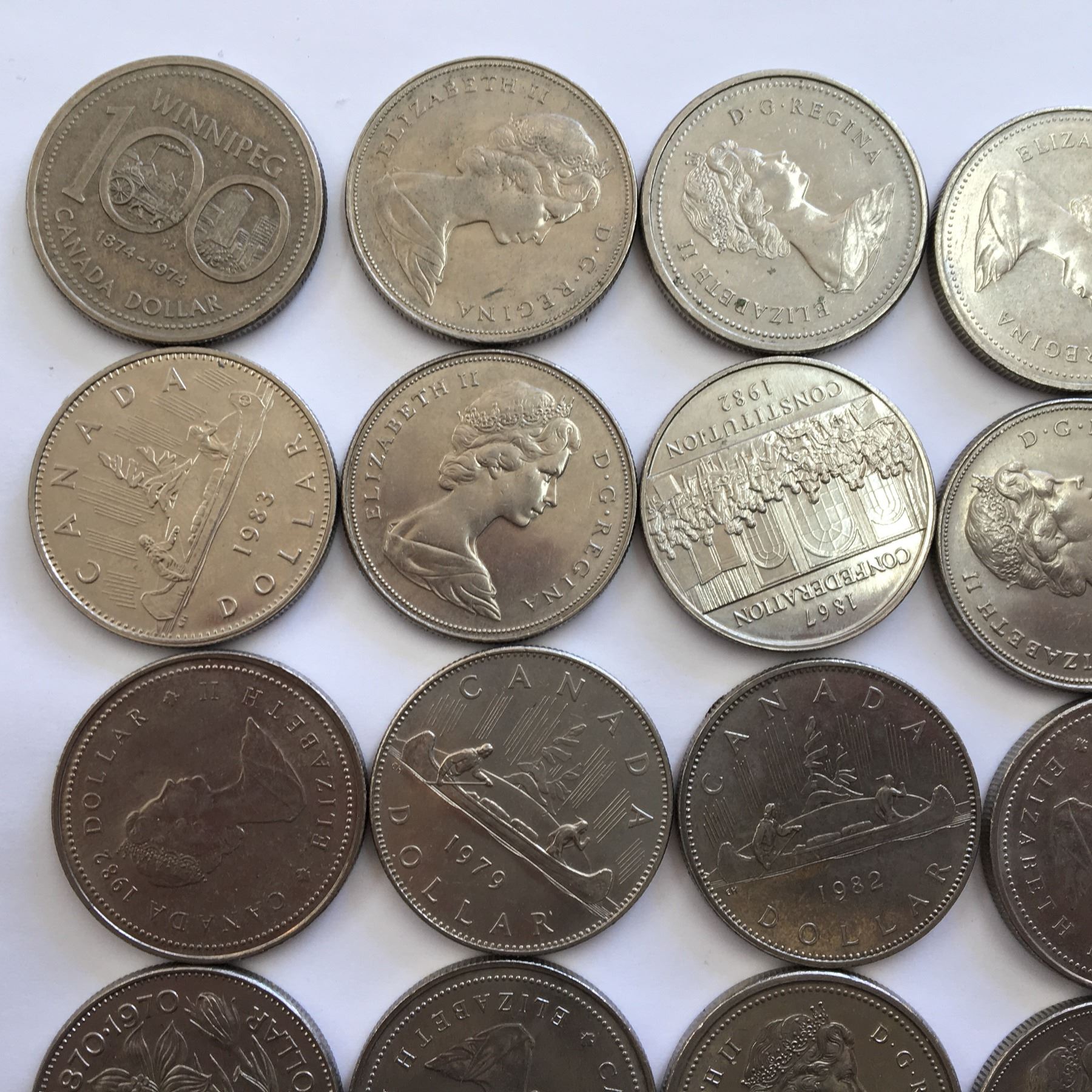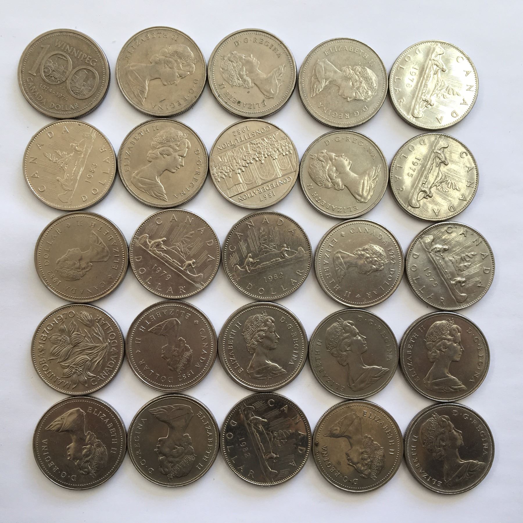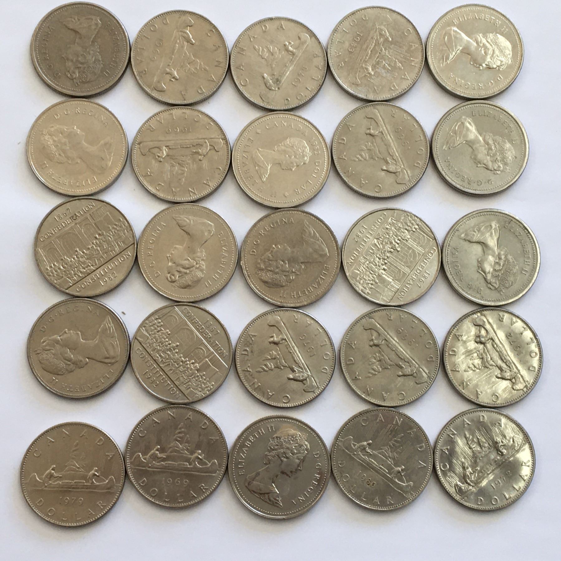 LOT OF 25 CANADA NICKEL DOLLARS VARIOUS YEARS