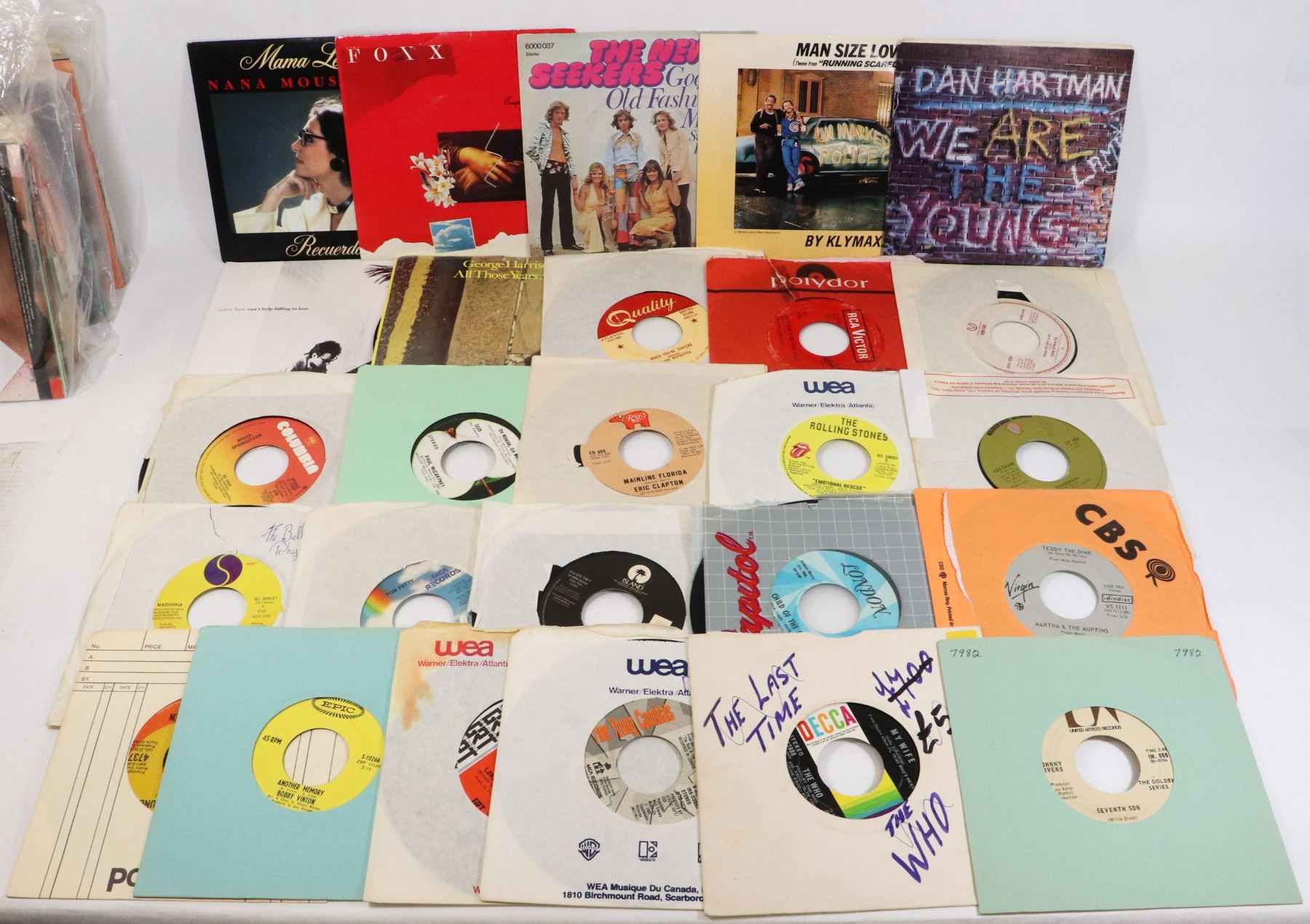 LOT OF 25 - 7" 45RPM SINGLES WITH PLAIN & SOME PICTURE SLEEVES INCLUDING BRUCE SPRINGSTEEN, GEORGE HARRISON, COREY HART, MARTHA & MUFFINS, TOM PETTY, MADONNA, THE WHO, ROLLING STONES, PAUL MCCARTNEY, ERIC CLAPTON ETC.