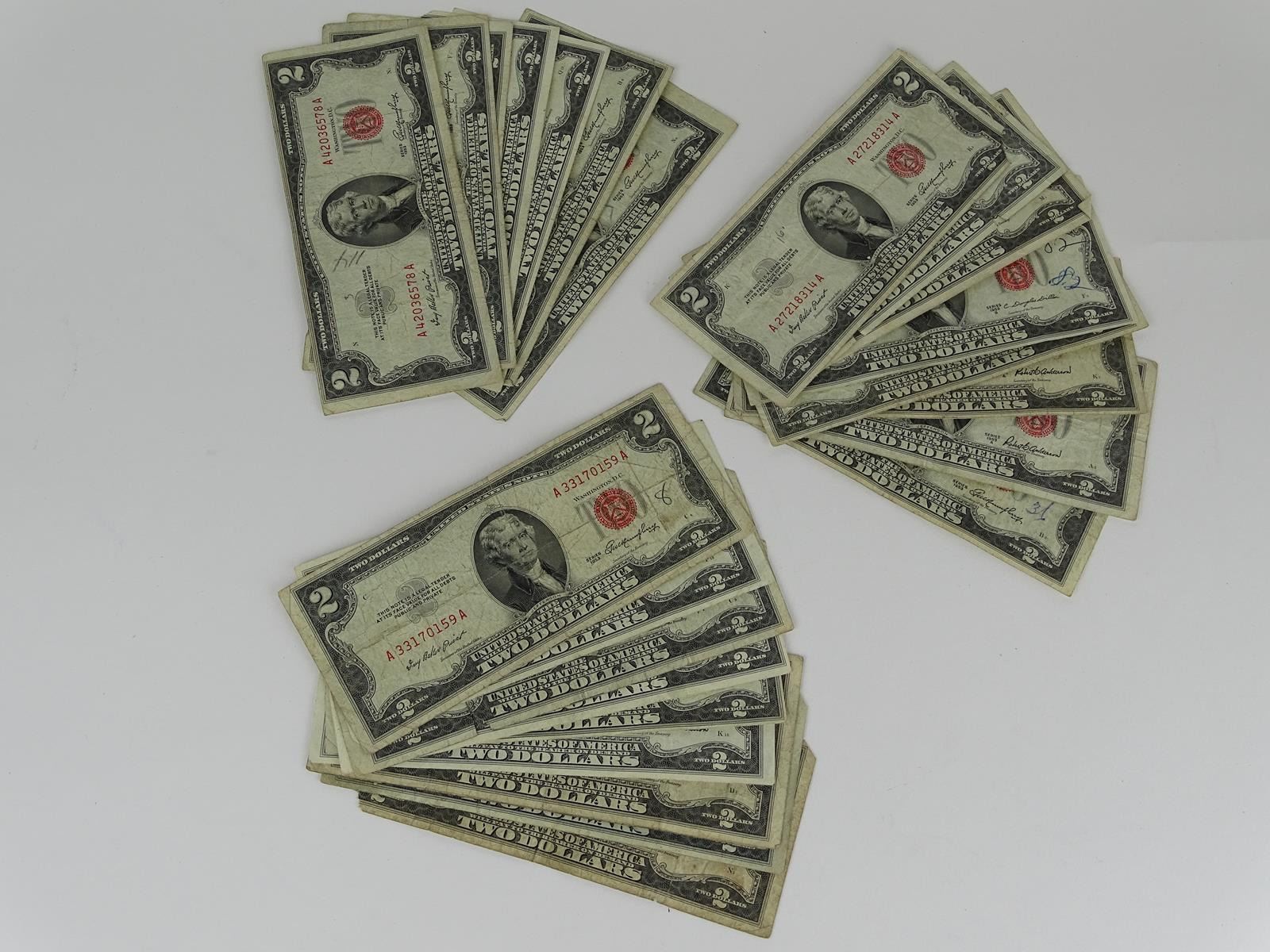 LOT OF 25 U.S. $2 NOTES, 1953