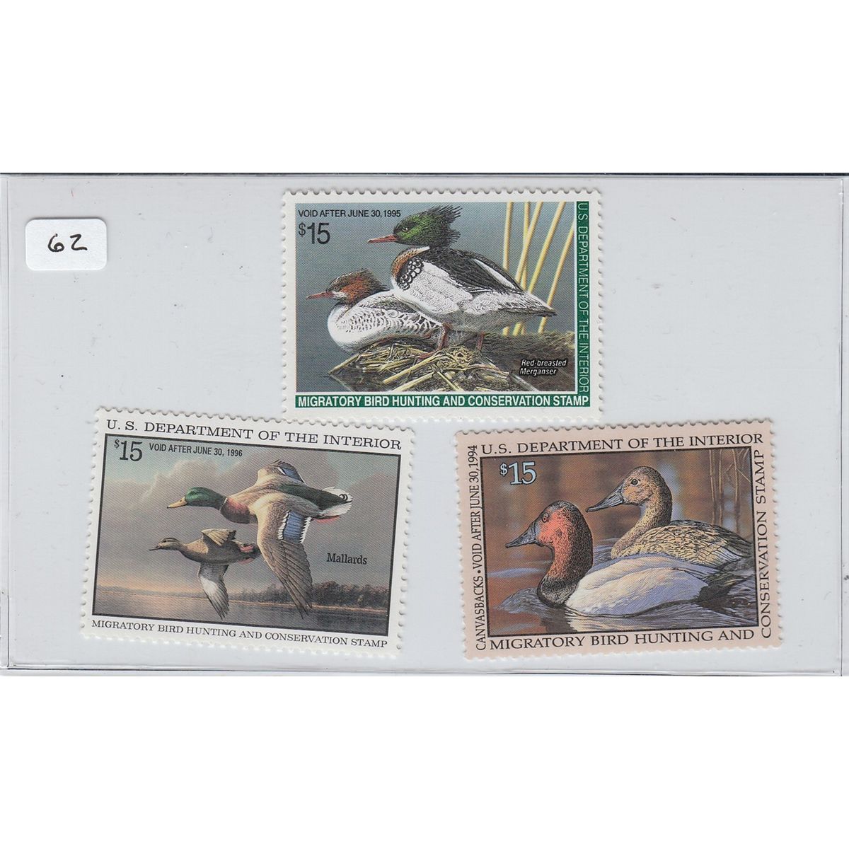 LOT OF 3 $15 DUCK STAMPS $45 FACE