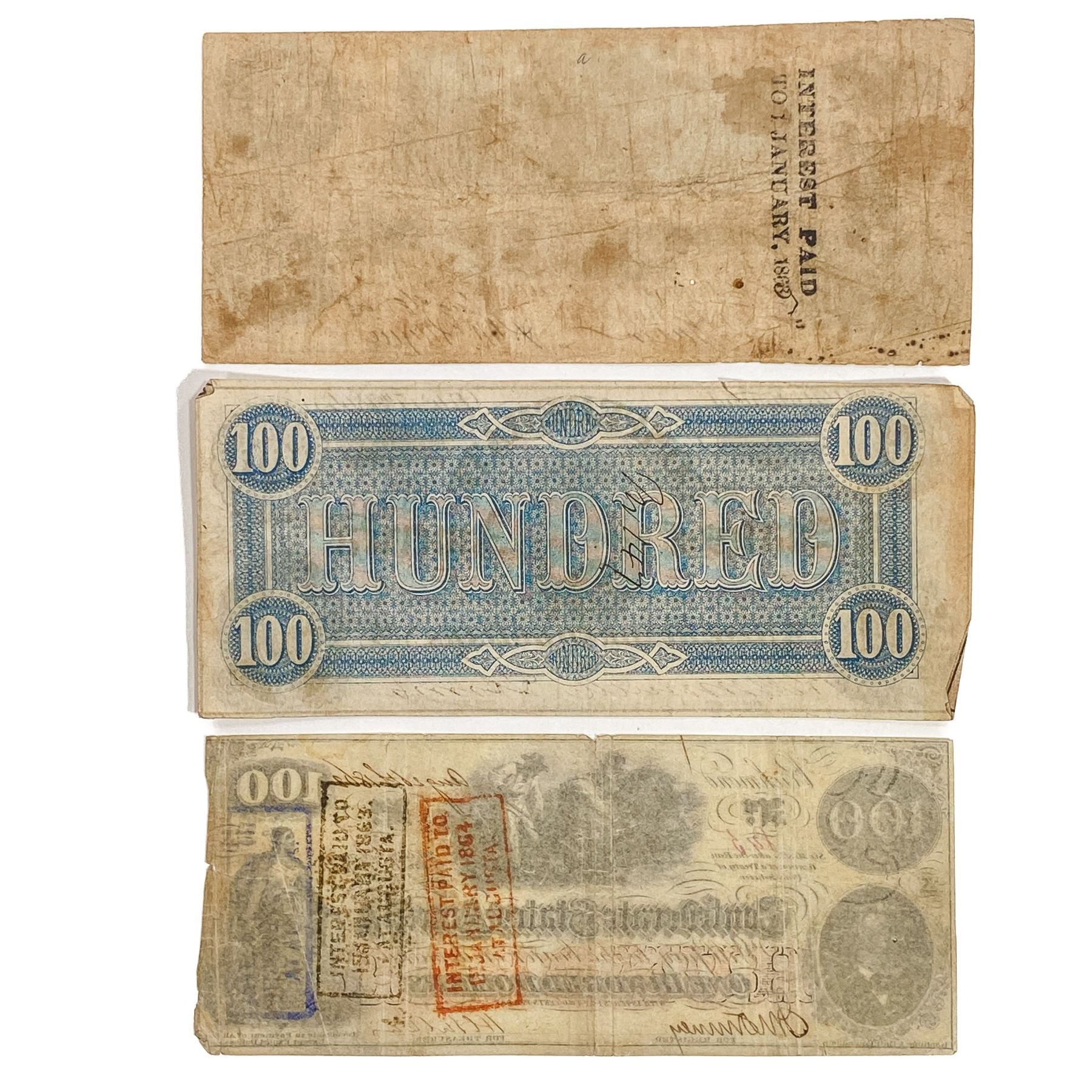 LOT OF (3) 1862-1864 $100 CSA CONFEDERATE STATES OF AMERICA CURRENCY NOTES