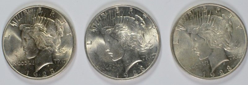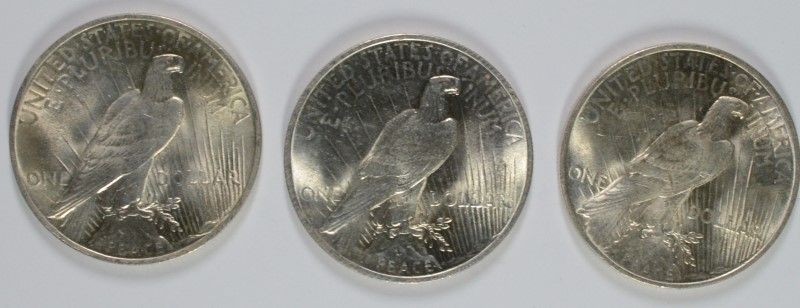 LOT OF ( 3 ) 1923 PEACE SILVER DOLLARS, NICE BU