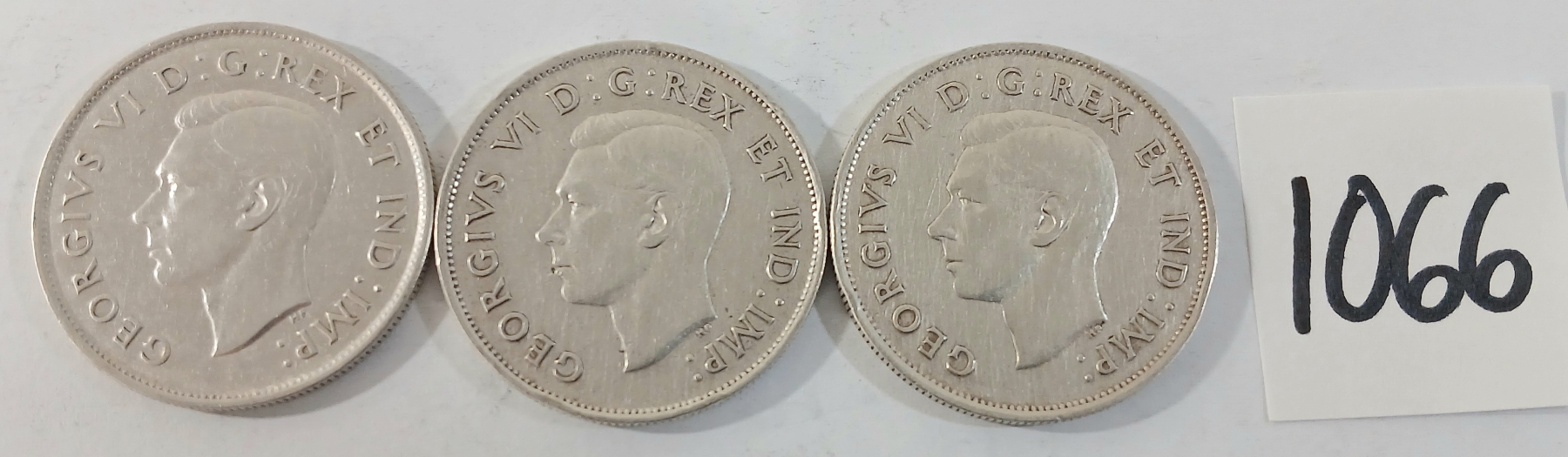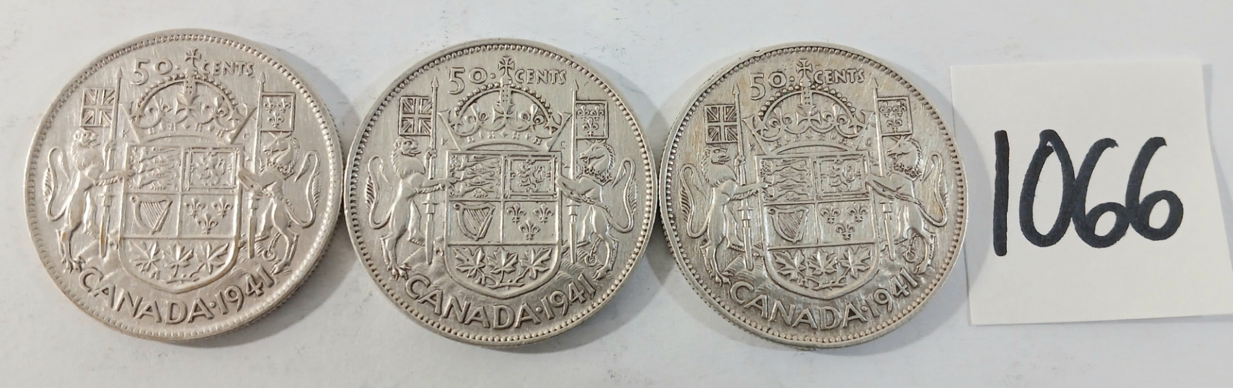 LOT OF 3 - 1941 CDN 50 CENT SILVER COINS