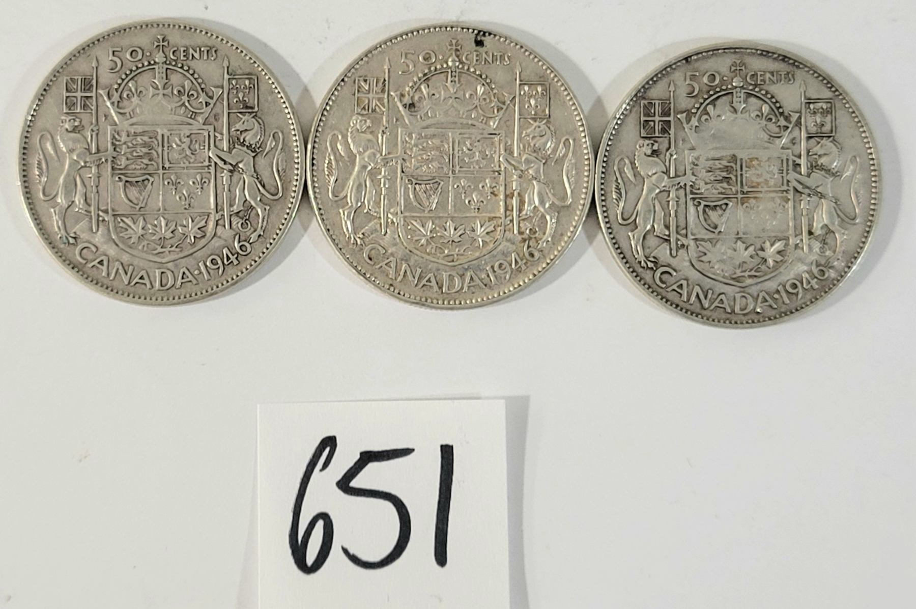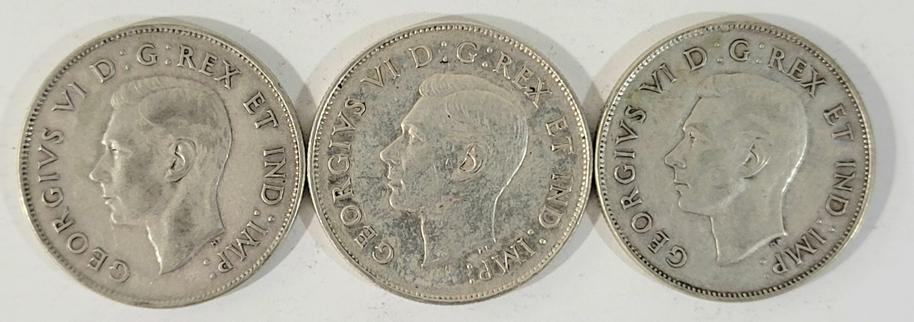 LOT OF 3 - 1946 CDN 50 CENT SILVER COINS
