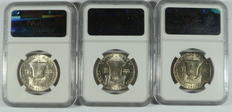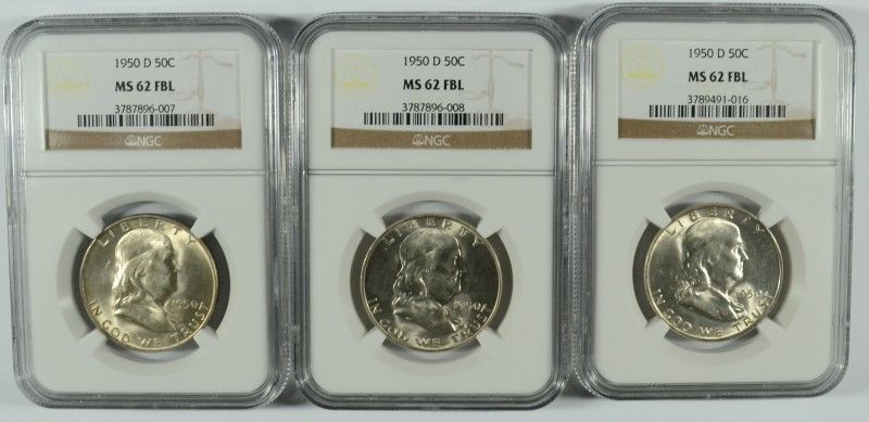 LOT OF ( 3 ) 1950-D FRANKLIN HALF DOLLARS, NGC MS-62 FBL