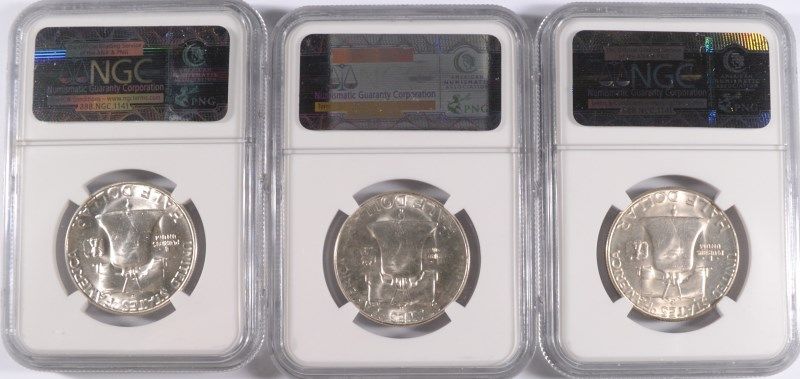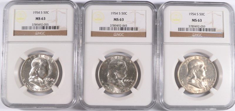 LOT OF ( 3 ) 1954-S FRANKLIN HALF DOLLARS, NGC MS-63