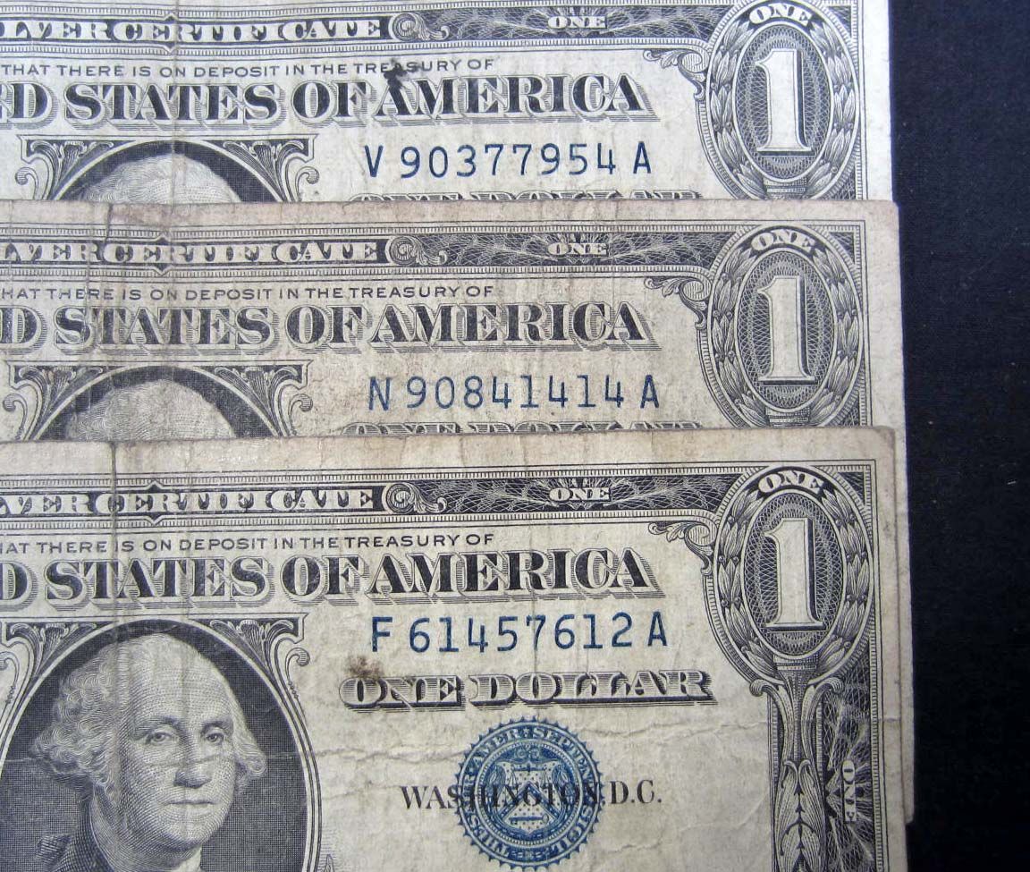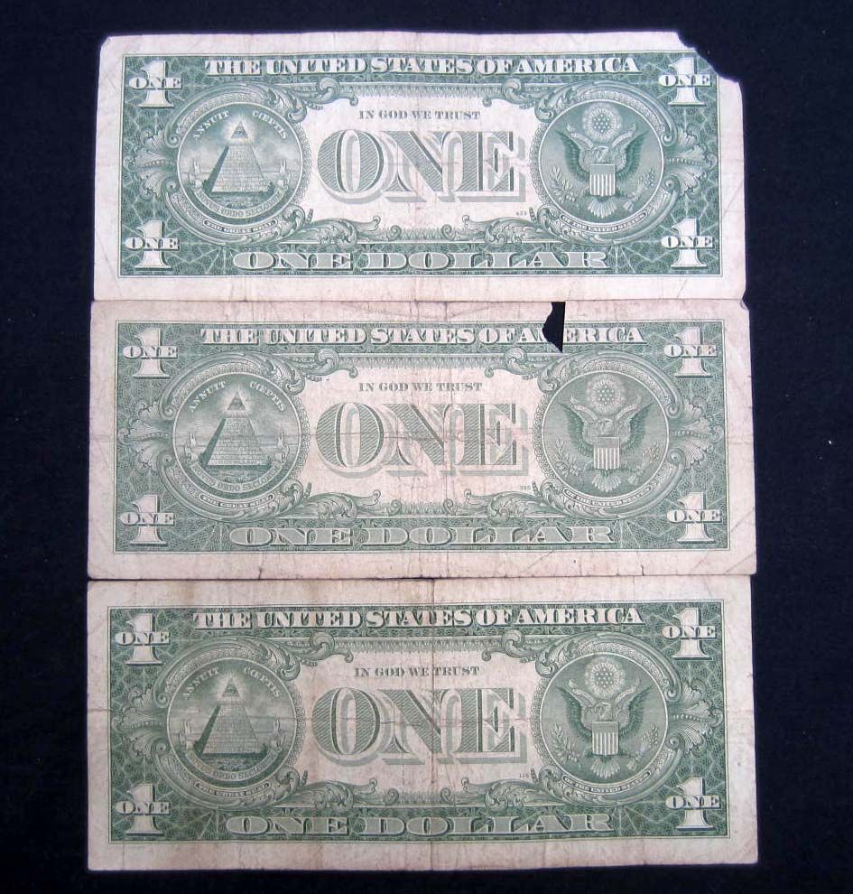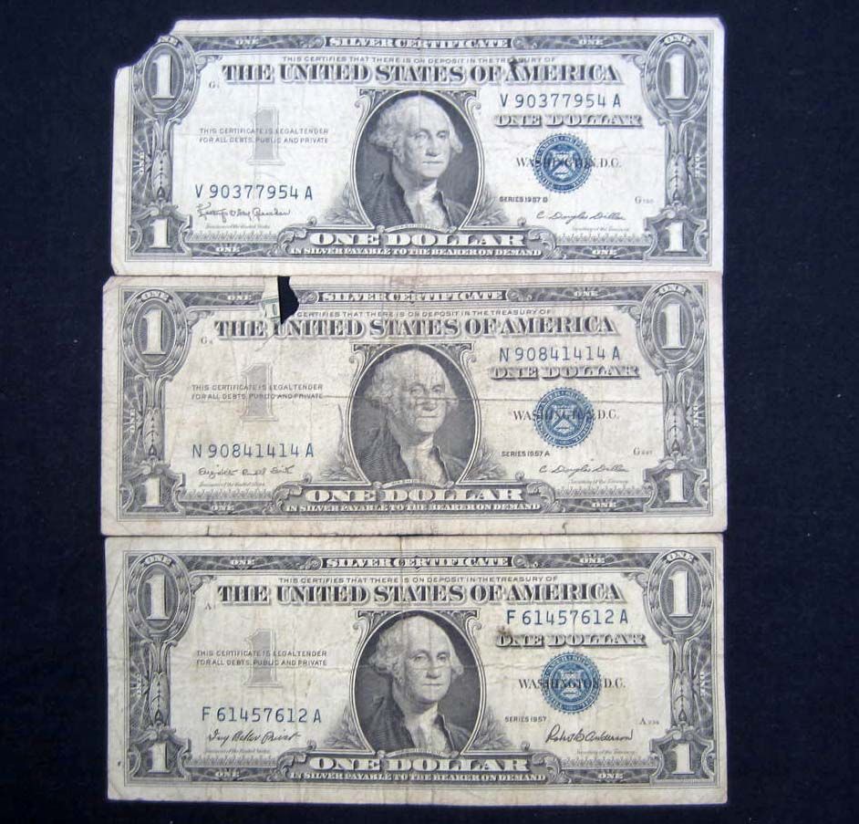 LOT OF 3 1957 BLUE SEAL ONE DOLLAR SILVER CERTIFICATES