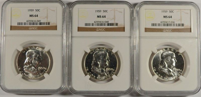 Grading:  Every person has their own opinion.  It is the responsibility of the buyer to examine and grade to their own satisfaction before they bid.  ABSOLUTELY NO COIN RETURNS ON THE BASIS OF GRADE.  Buyers shall rely entirely on their own inspection and information. Our estimates are values taken from the lastest "Coin World" trends based on t he grade listed of a coin. This value/estimate is not an inducement to bid this amount. Bid the amount you wish. If you have questions or concerns about any coin, call us before you bid.