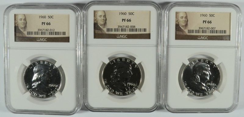LOT OF ( 3 ) 1960 FRANKLIN HALF DOLLARS, NGC PROOF-66