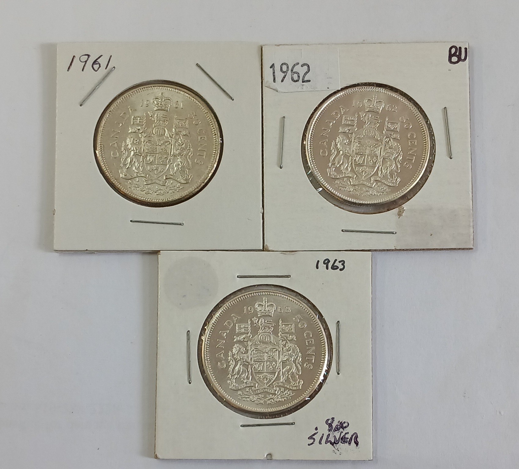 LOT OF 3 - 1961-1963 CDN SILVER HALF DOLLARS
