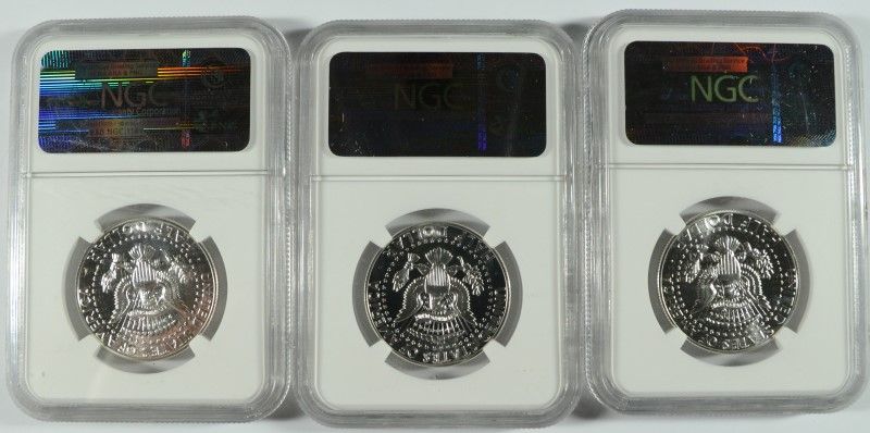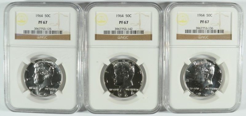 LOT OF ( 3 ) 1964 KENNEDY HALF DOLLARS, NGC PROOF-67