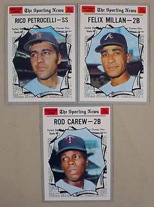 LOT OF 3 1970 TOPPS BASEBALL CARDS - ALL STARS - Rod Carew No. 453, Felix Millan No. 452 and Rico Petrocelli No. 457