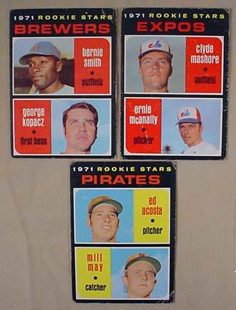 LOT OF 3 1971 TOPPS BASEBALL CARDS - Incl. Rookie Stars Ed Acosta, Bernie Smith, Clyde Mashore, More!