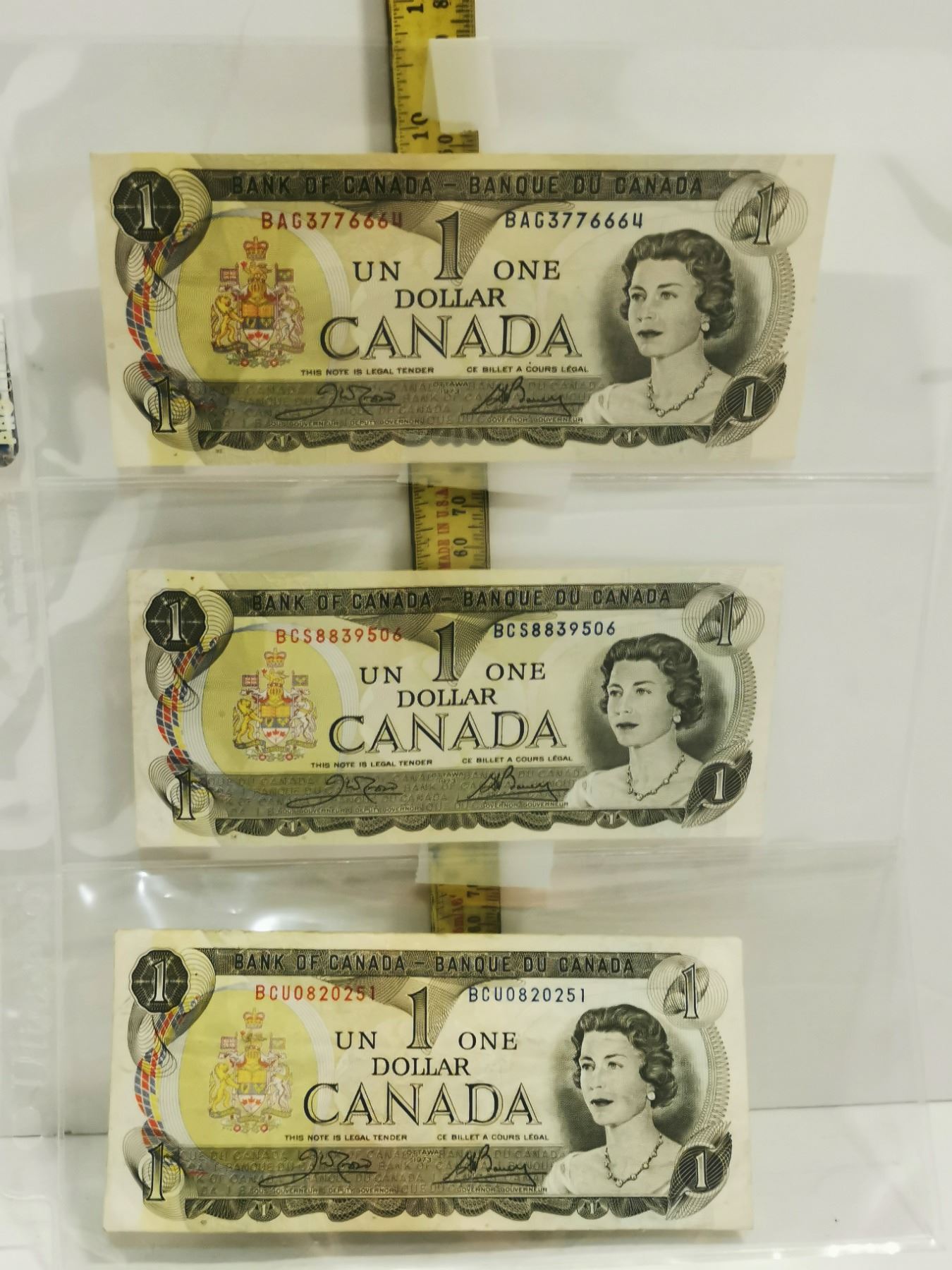 LOT OF 3 1973 $1 BANK OF CANADA BANKNOTES