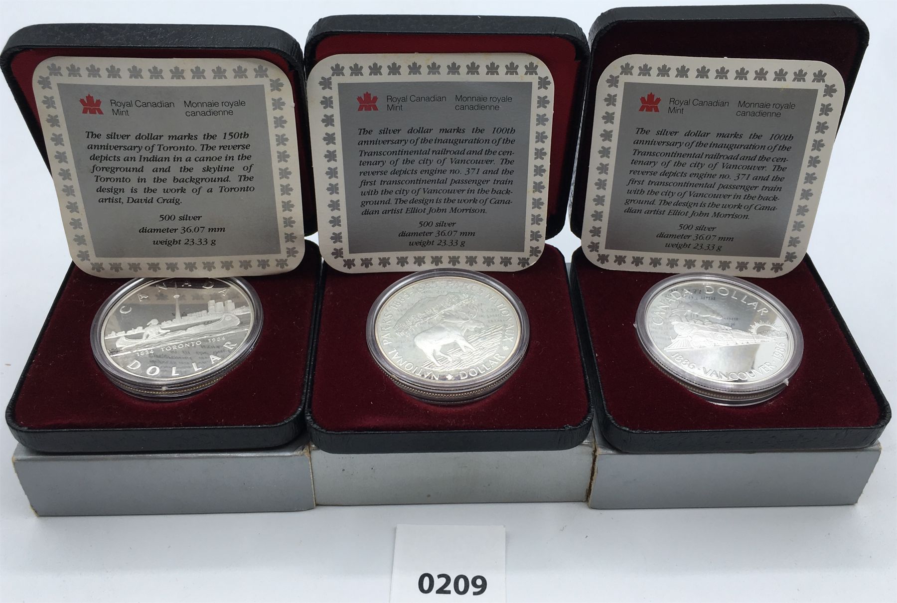 LOT OF 3 - 1984, 85, 86 RCM PROOF SILVER DOLLARS