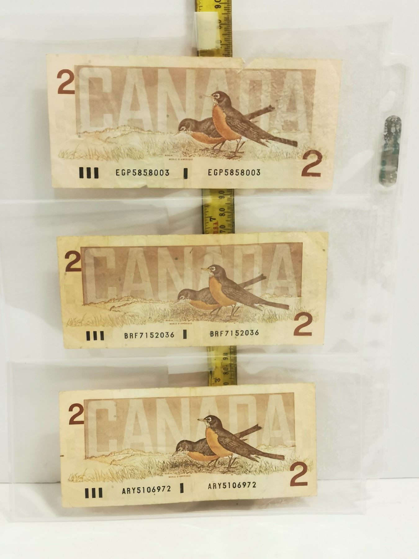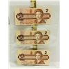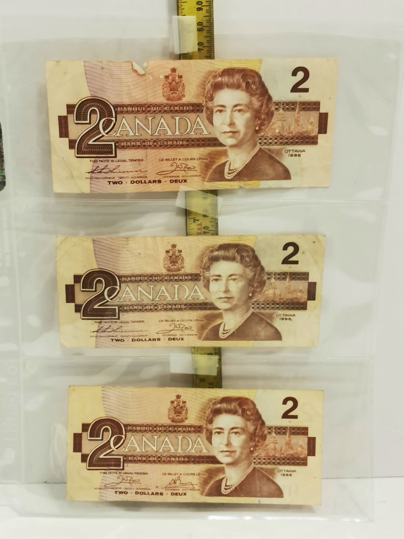 LOT OF 3 1986 $2 BANK OF CANADA BANKNOTES