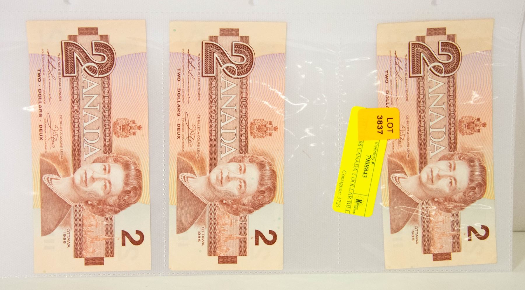LOT OF 3 1986 CANADA 2 DOLLAR BILLS