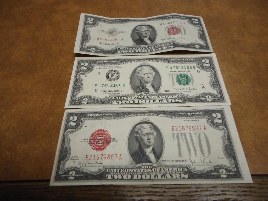 1928-G US RED SEAL NOTE, 1953 US RED SEAL NOTE AND 1995 FEDERAL RESERVE NOTE GREEN SEAL