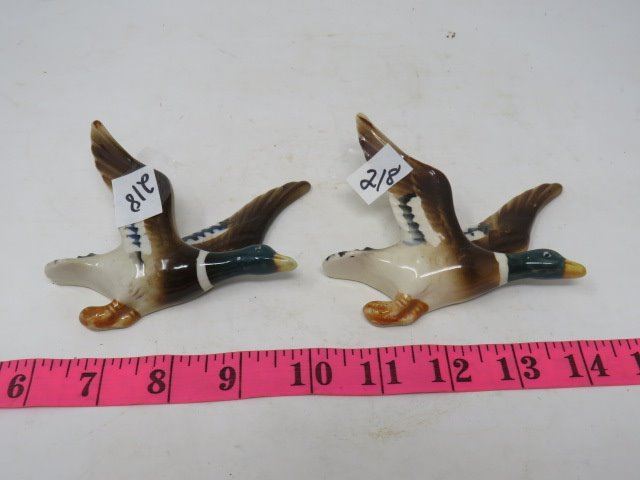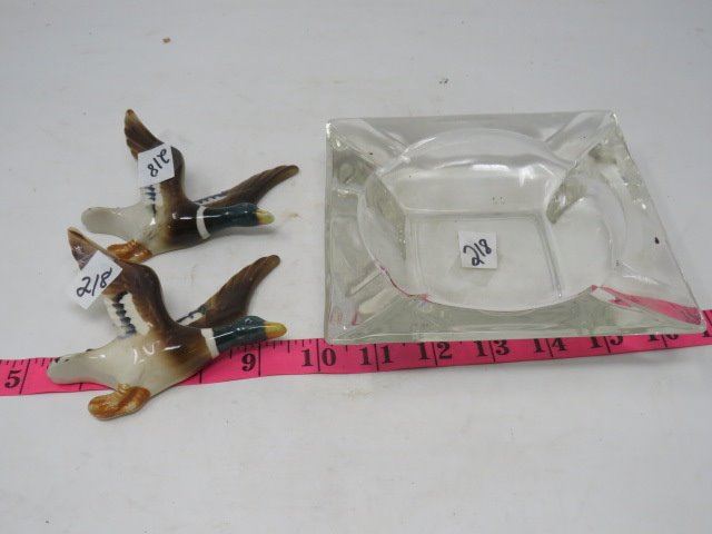 LOT OF 3 - 2 WALL HANGINGS (PORCELAIN DUCKS) *STAMPED JAPAN ZN7739* & GLASS ASHTRAY (LARGE)