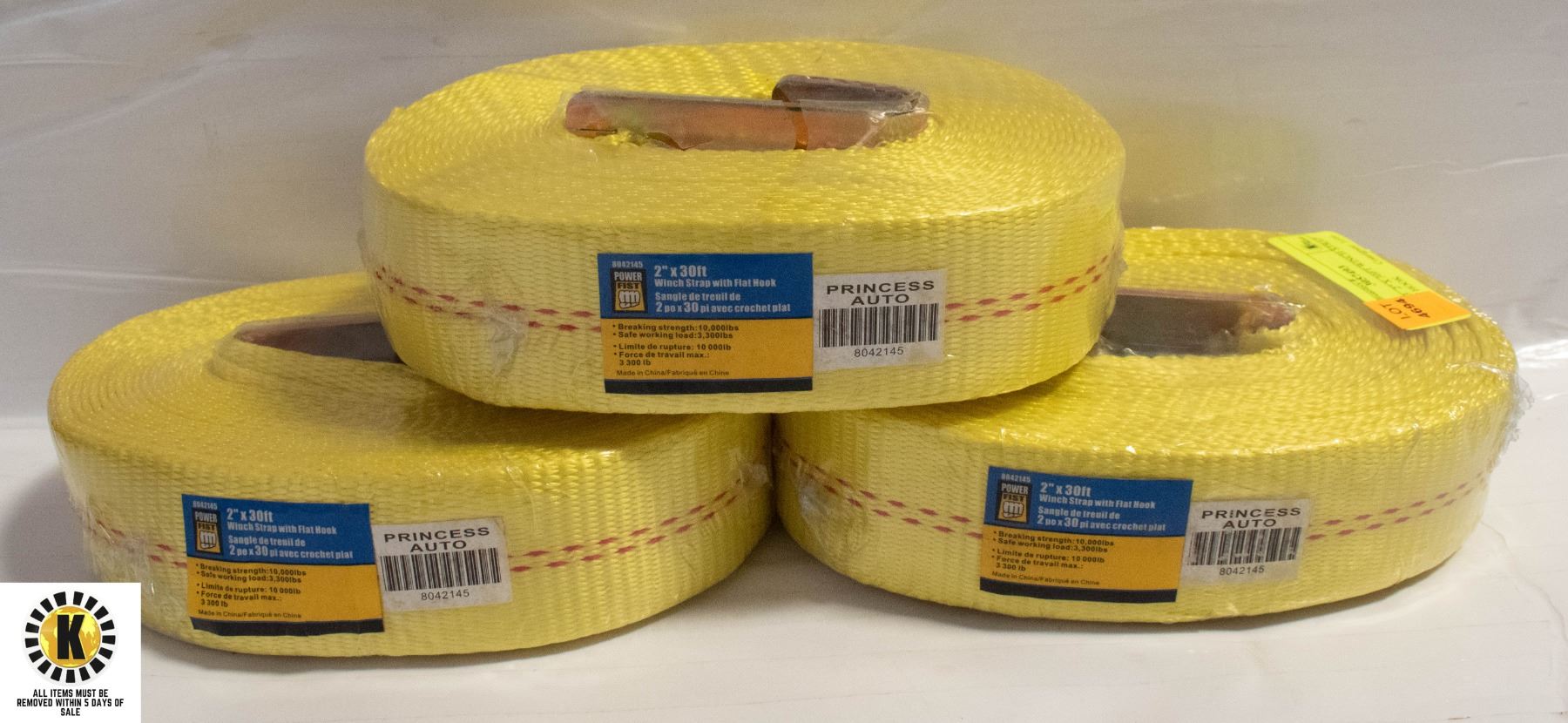 LOT OF 3 2" X 30FT WINCH STRAP W/ FLAT HOOK