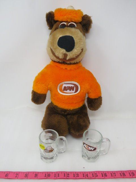 LOT OF 3 A & W RESTAURANT ITEMS (2 X SMALL MUGS, ONE STUFFED BEAR)