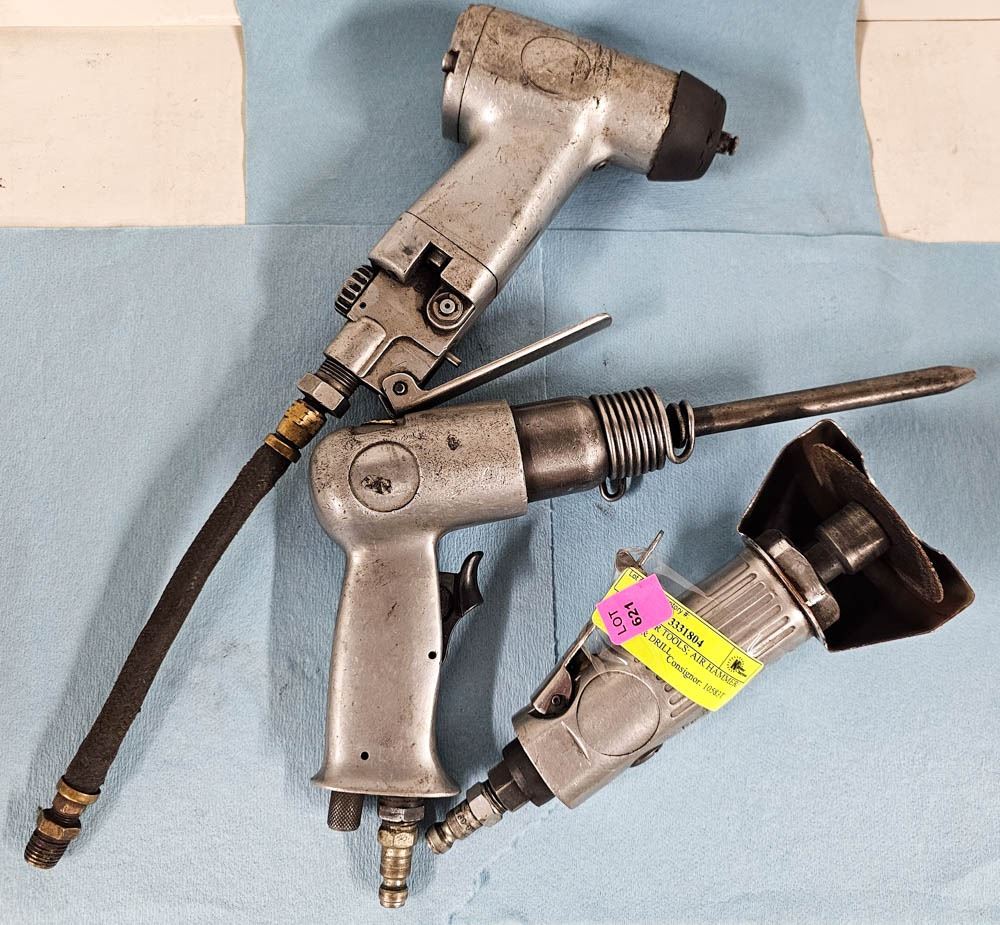 LOT OF 3 AIR TOOLS; AIR HAMMER/ GRINDER & DRILL