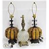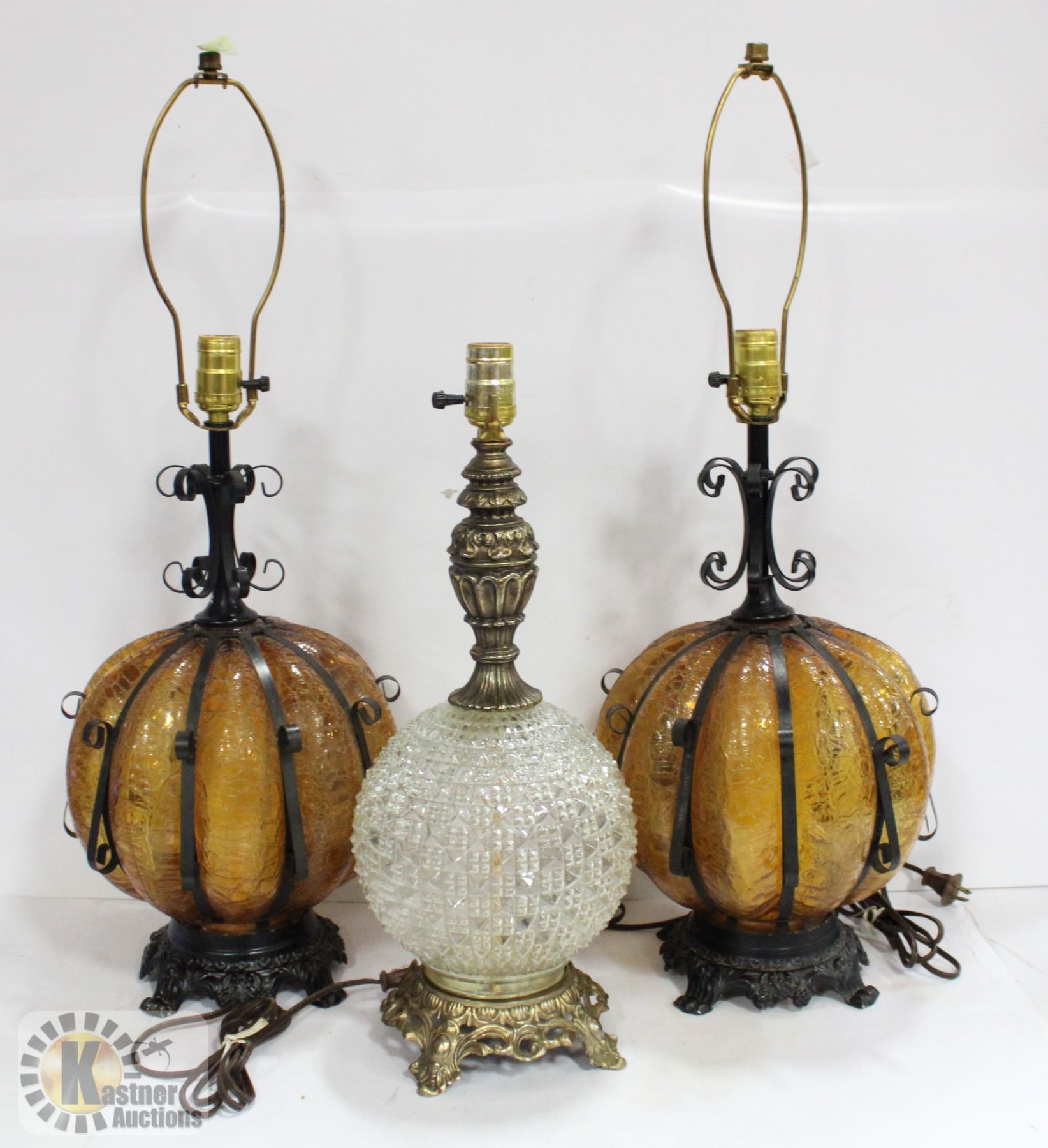 LOT OF 3 ASSORTED ESTATE LAMPS NO SHADES