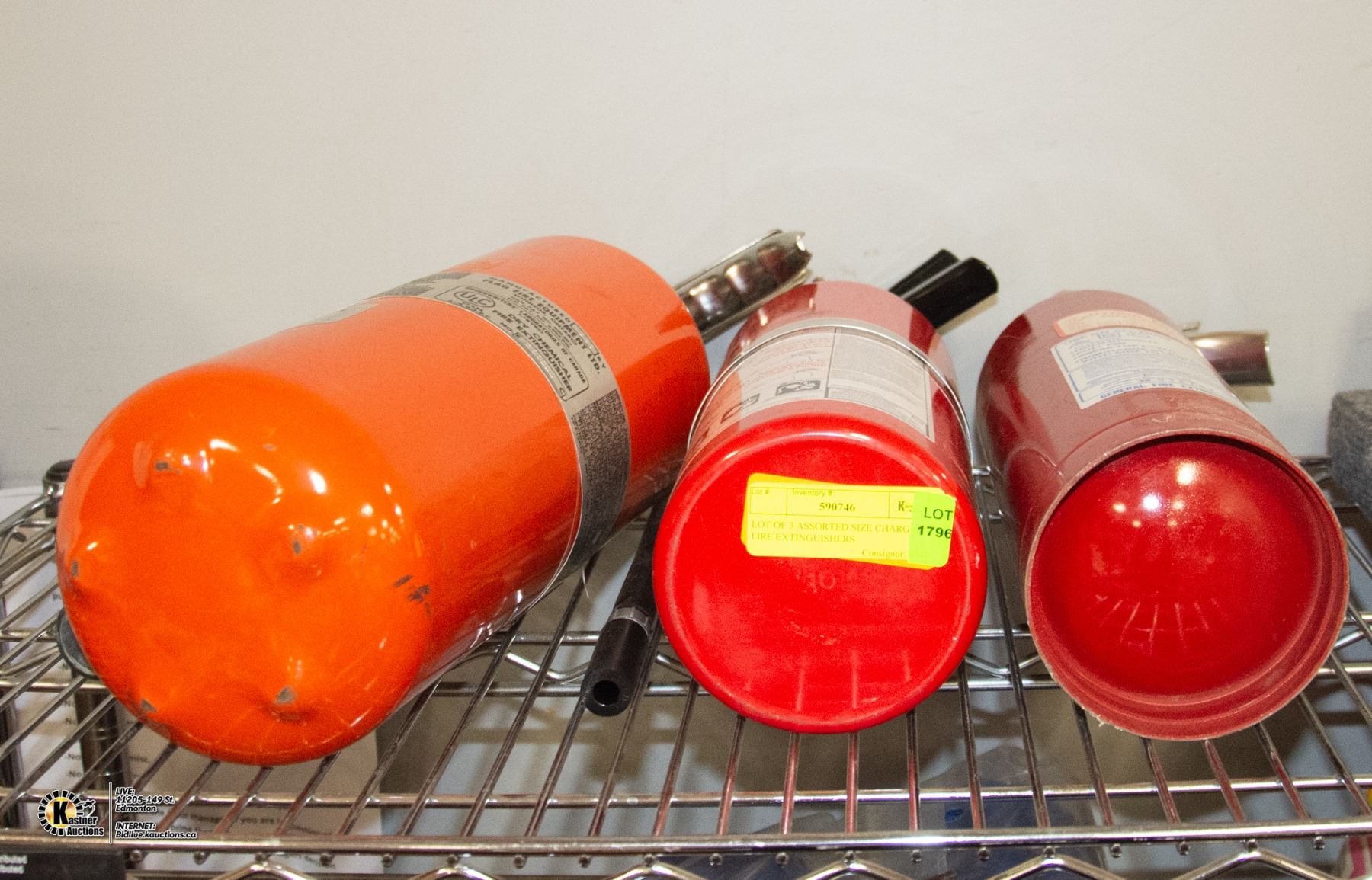 LOT OF 3 ASSORTED SIZE CHARGED FIRE EXTINGUISHERS