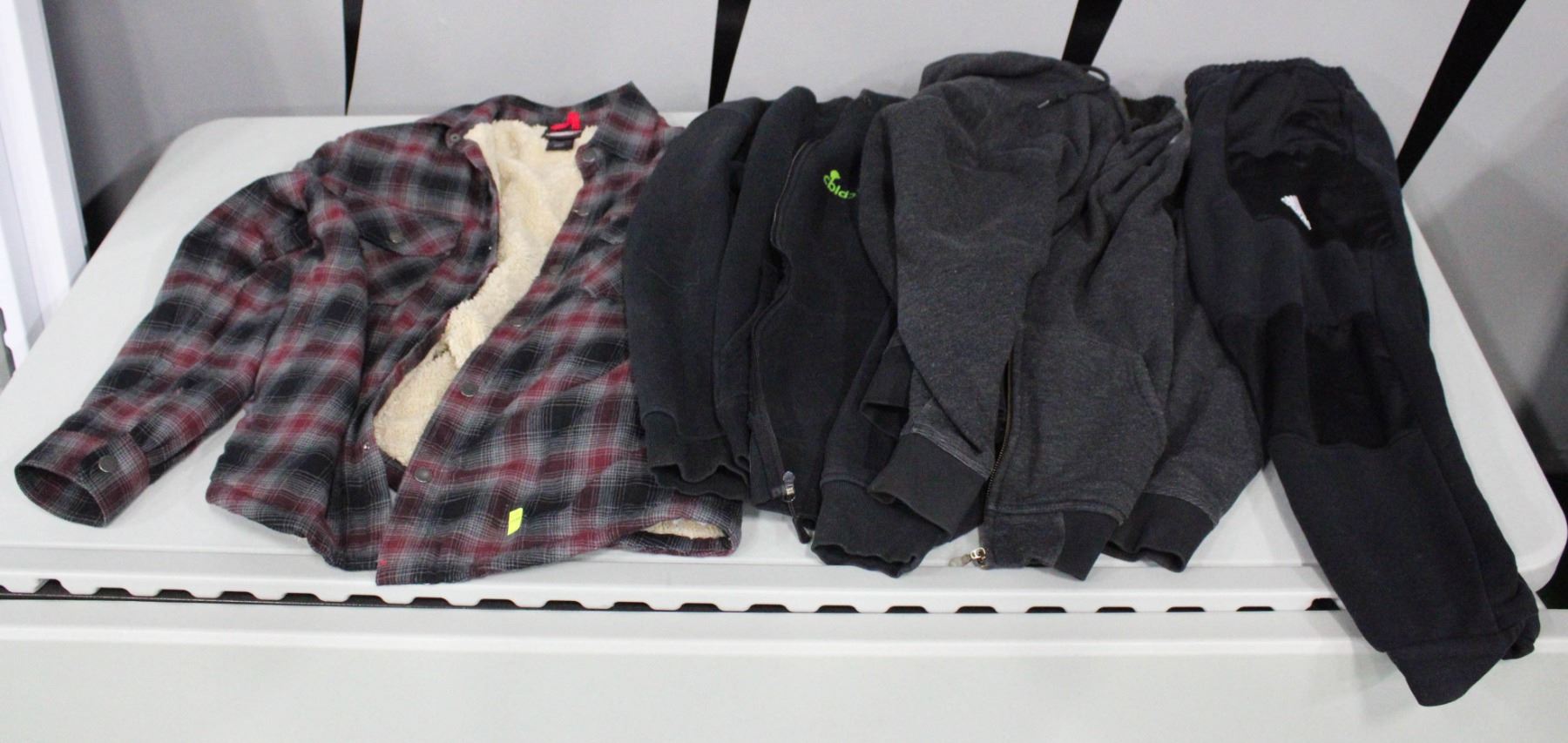 SWEATER SIZES: MED, 2XL, SMALL. SWEATPANTS SIZE MED****BUYER RESPONSIBLE FOR REMOVAL & TRANSPORTATION OF ALL ITEMS FROM THIS AUCTION****