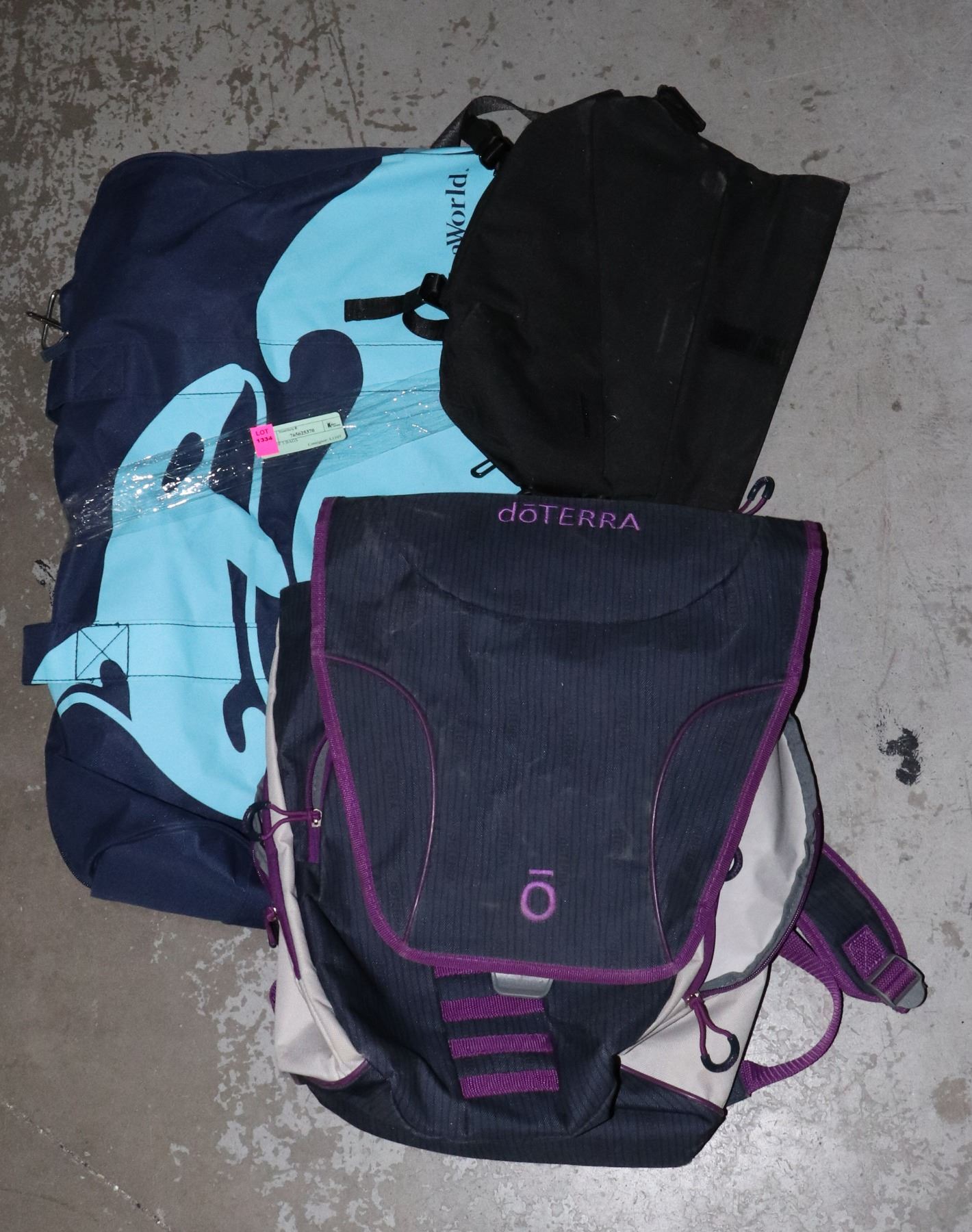1 BACKPACK, 1 SATCHEL, 1 SEAWORLD DUFFEL BAG