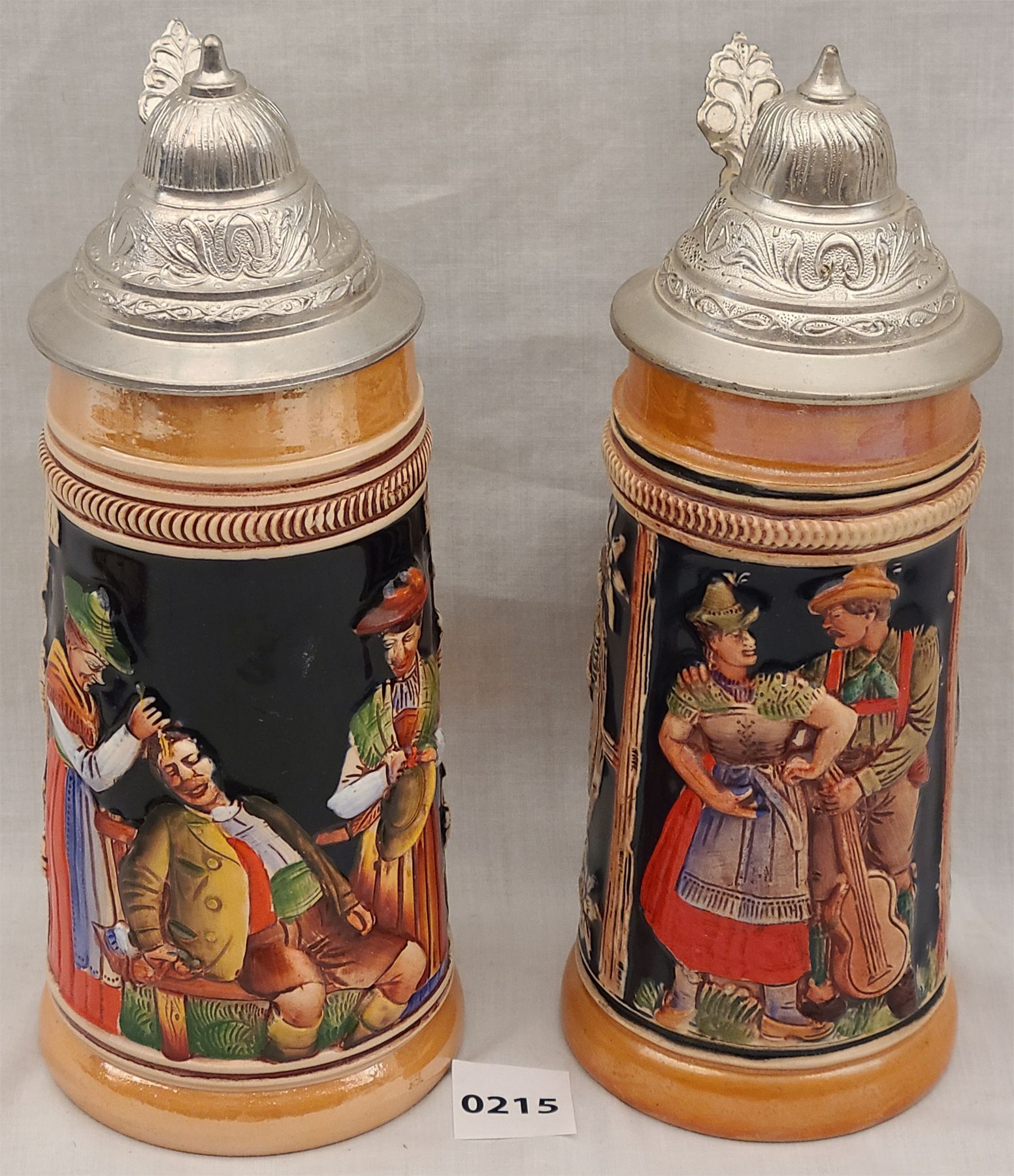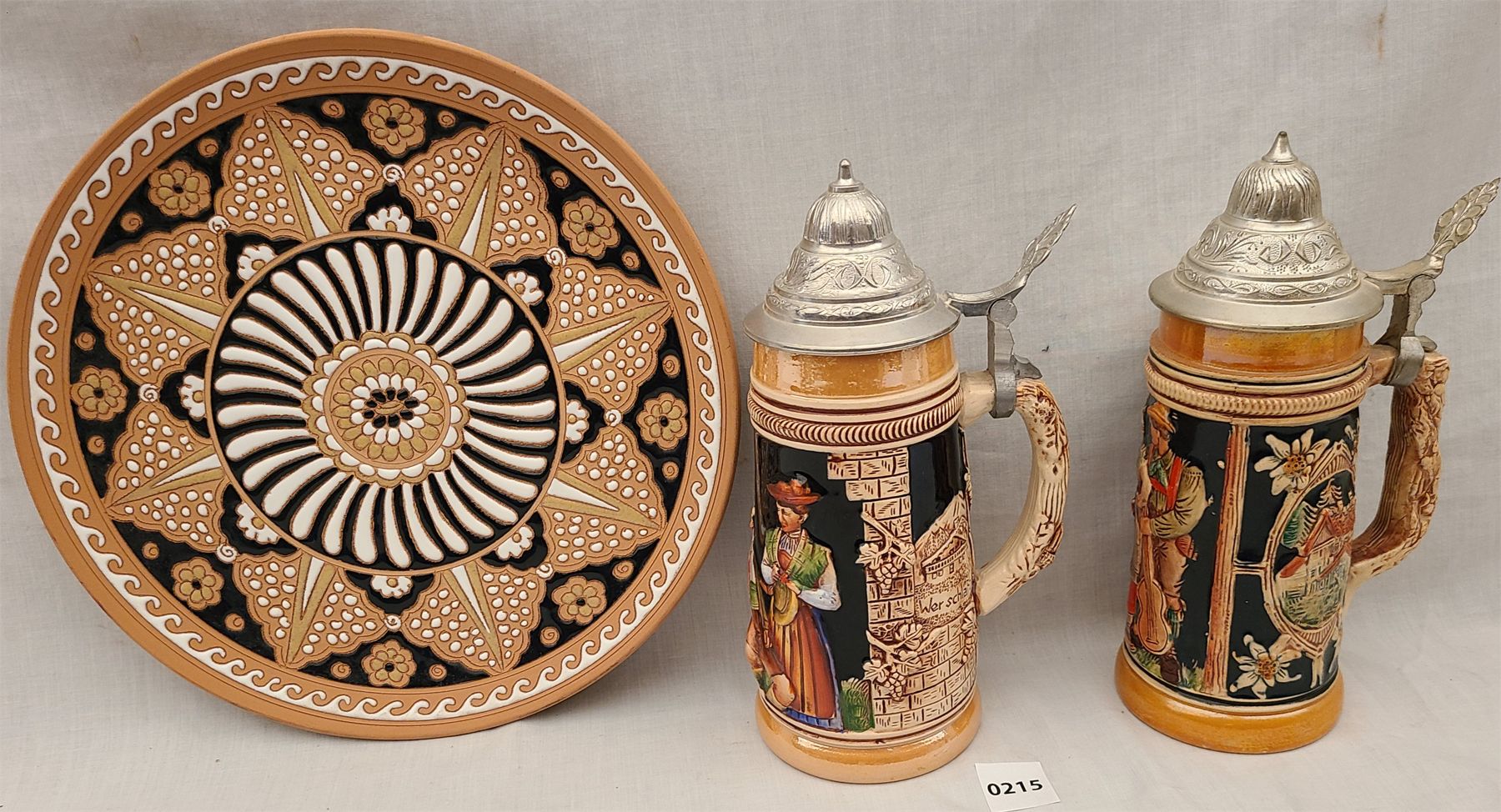 NOTE: STEINS MARKED MADE IN GERMANY AND MADE IN WEST GERMANY. PLATTER 11in DIA.