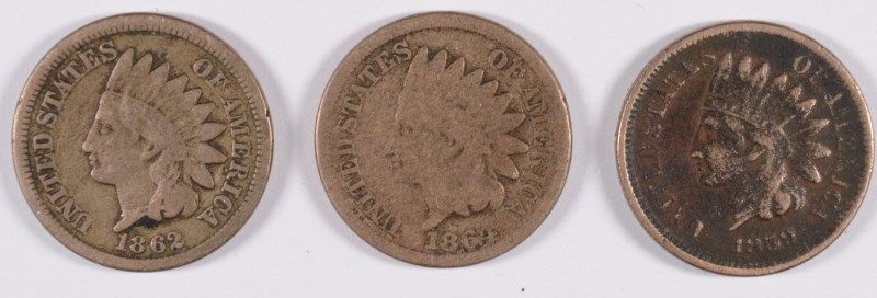 LOT OF ( 3 ) BETTER DATE INDIAN HEAD CENTS: 1859, 1862, AND 1864 ALL VG