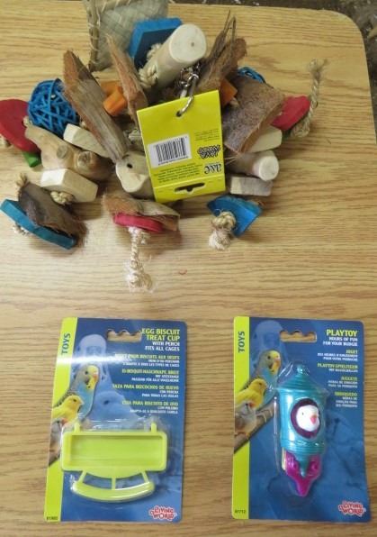 LOT OF 3 BIRD ITEMS ( JAVA WOOD LARGE BIRD TOY) *SMALL TREAT FEEDER TRAY* (SMALL TOY) *NOS*