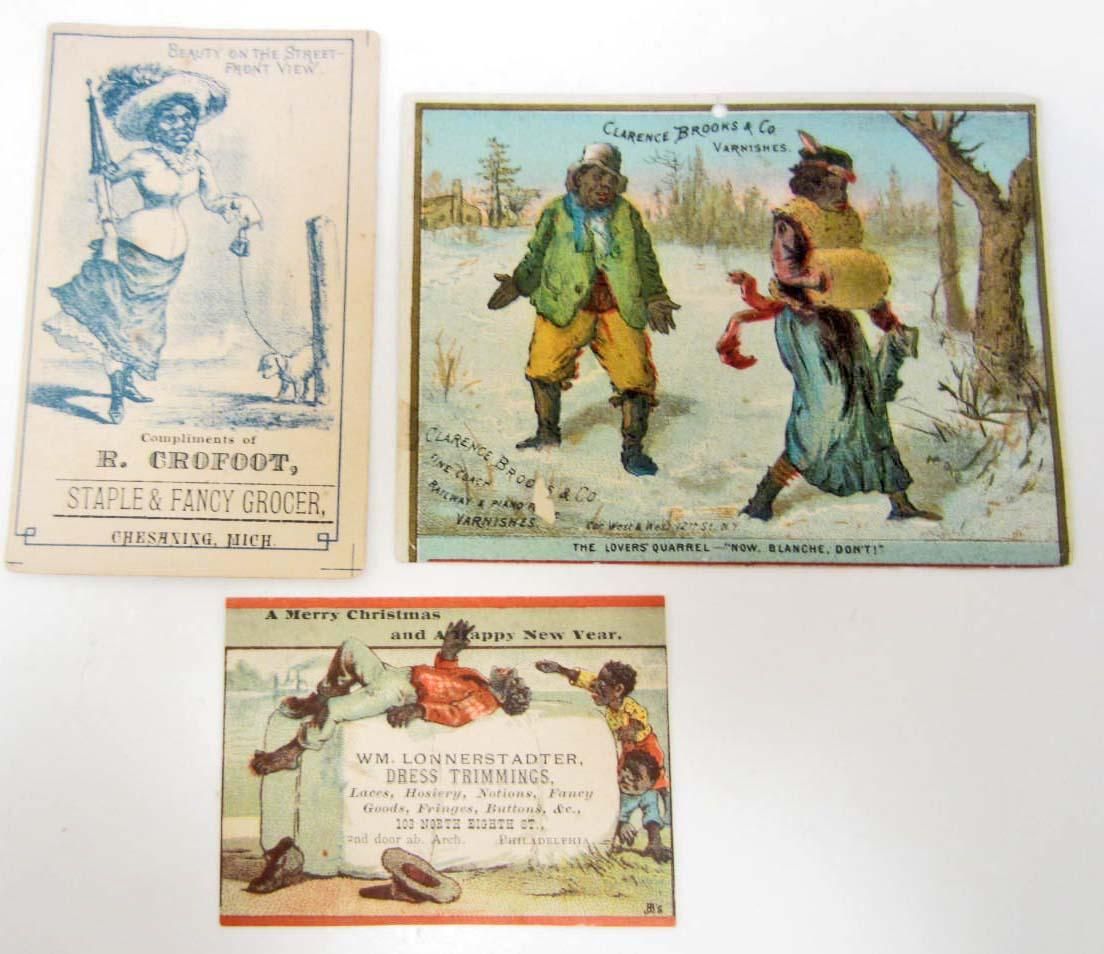 LOT OF 3 BLACK AMERICANA ADVERTISING VICTORIAN TRADE CARDS