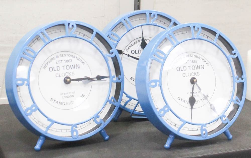LOT OF 3- BLUE DECORATIVE TABLE TOP CLOCKS